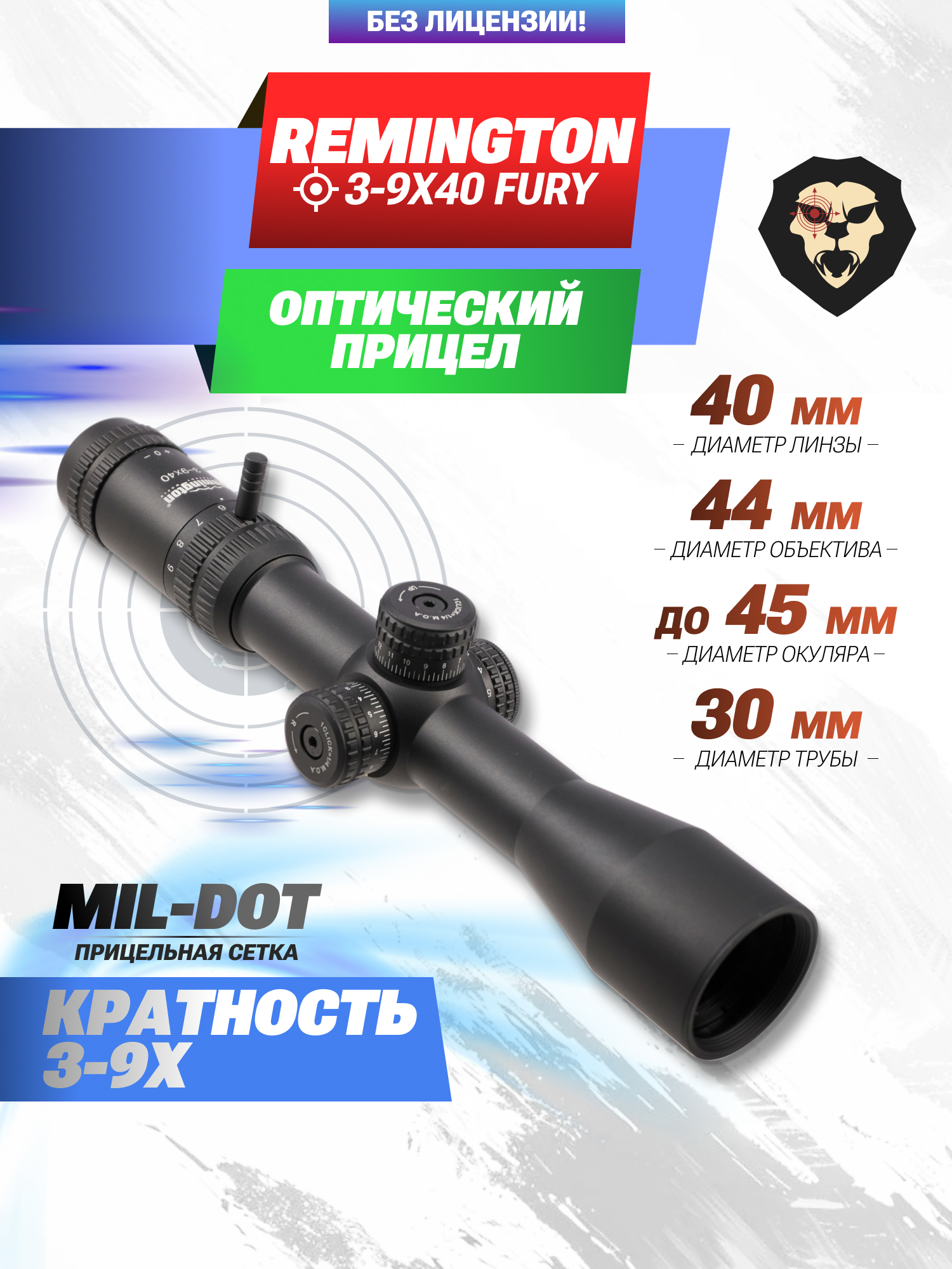 Оптический прицел Remington 3-9x40 Fury (30 mm, Mil-Dot, с подсветкой, оригинал) купить в интернет-магазине Popadiv10.