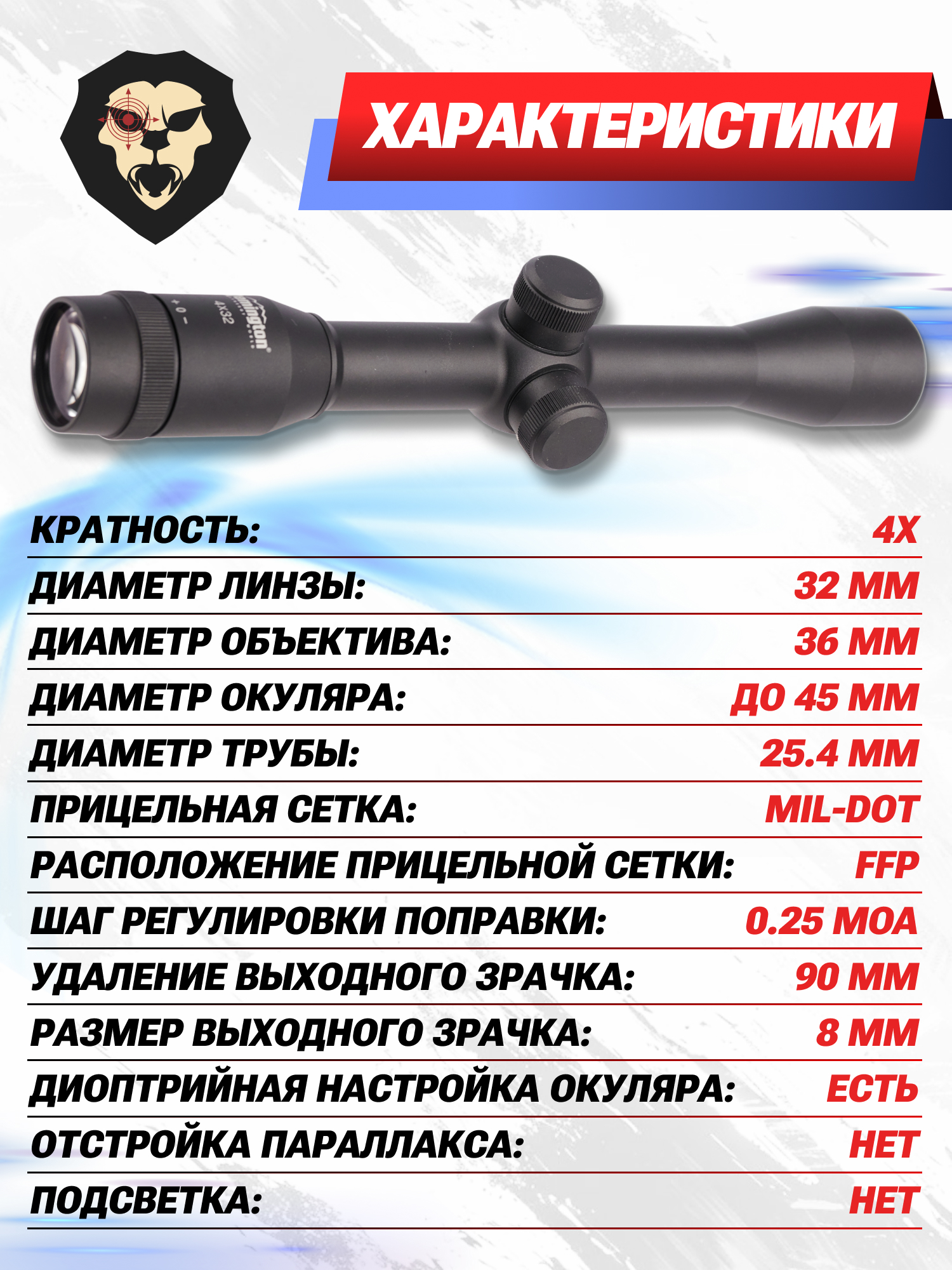 | Расположение прицельной сетки | 1 фокальная плоскость |