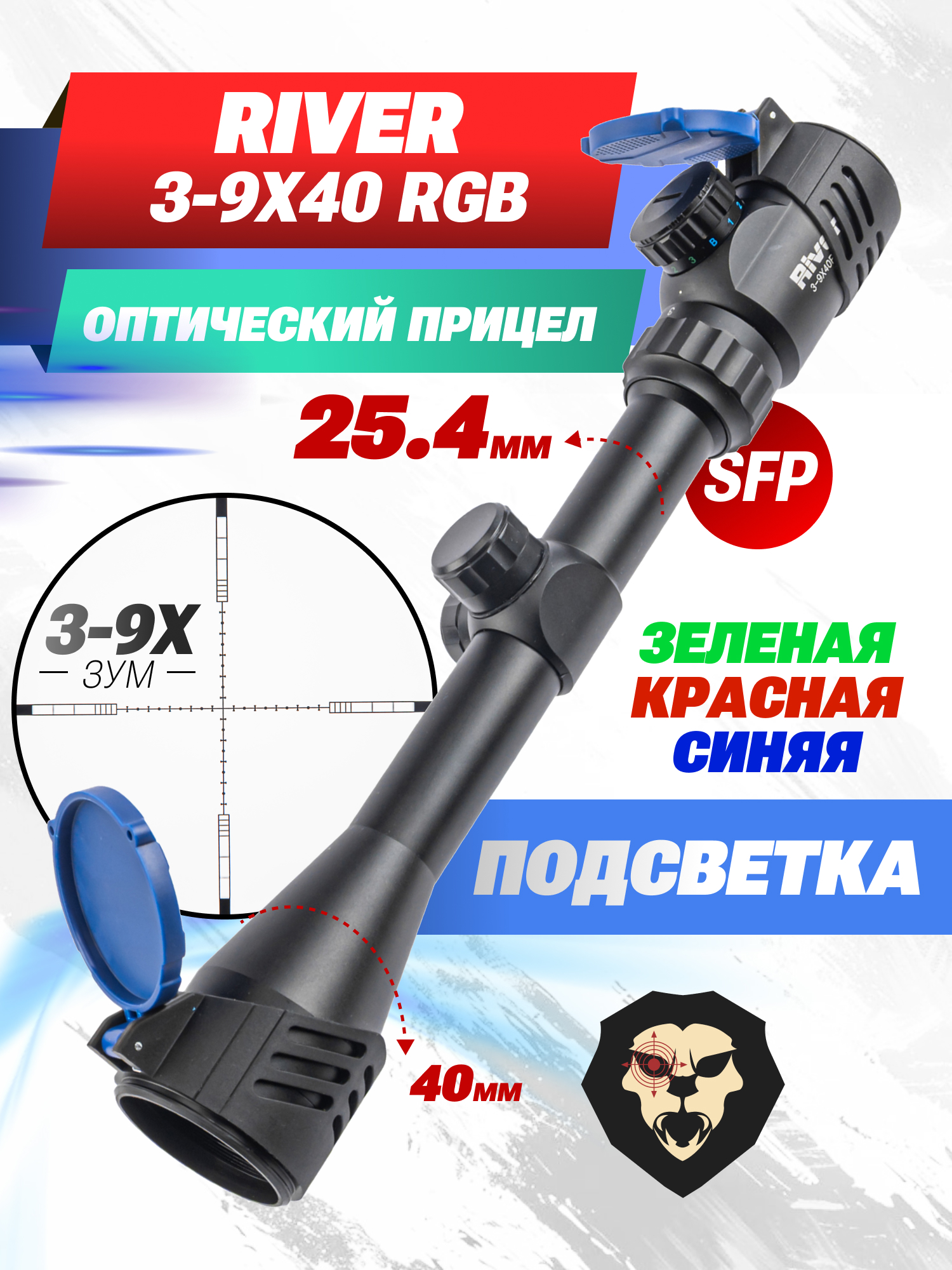 Оптический прицел River 3-9х40 RGB (крышки, 25.4 мм, кольца Ласточкин хвост) купить в интернет-магазине Popadiv10.
