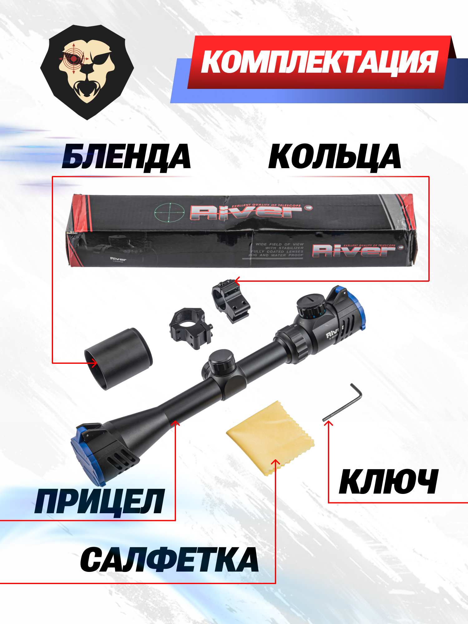 Артикул производителя Оптический прицел River 3-9х40 RGB (крышки, 25.4 мм, кольца Ласточкин хвост) по низкой цене 2990 руб. Модель со штрихкодом производителя Вы можете оплатить наложенным платежем с доставкой или в отделении транспортной компании (ПЭК, СДЭК, Boxberry). Ваш заказ со штрихкодом 2000000183299 забрать на почте с оплатой при получении в любой части Российской Федерации.