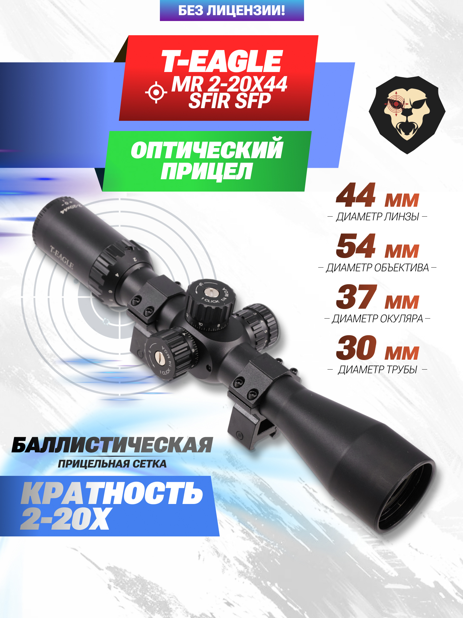 Информация о товаре "Оптический прицел T-Eagle MR 2-20x44 SFIR SFP (30 мм, подсветка)" носит ознакомительный характер, и не является публичной офертой, определяемой положениями Статьи 437 Гражданского кодекса Российской Федерации, характеристики, внешний вид, цвет и комплектация могут быть изменены производителем без уведомления.