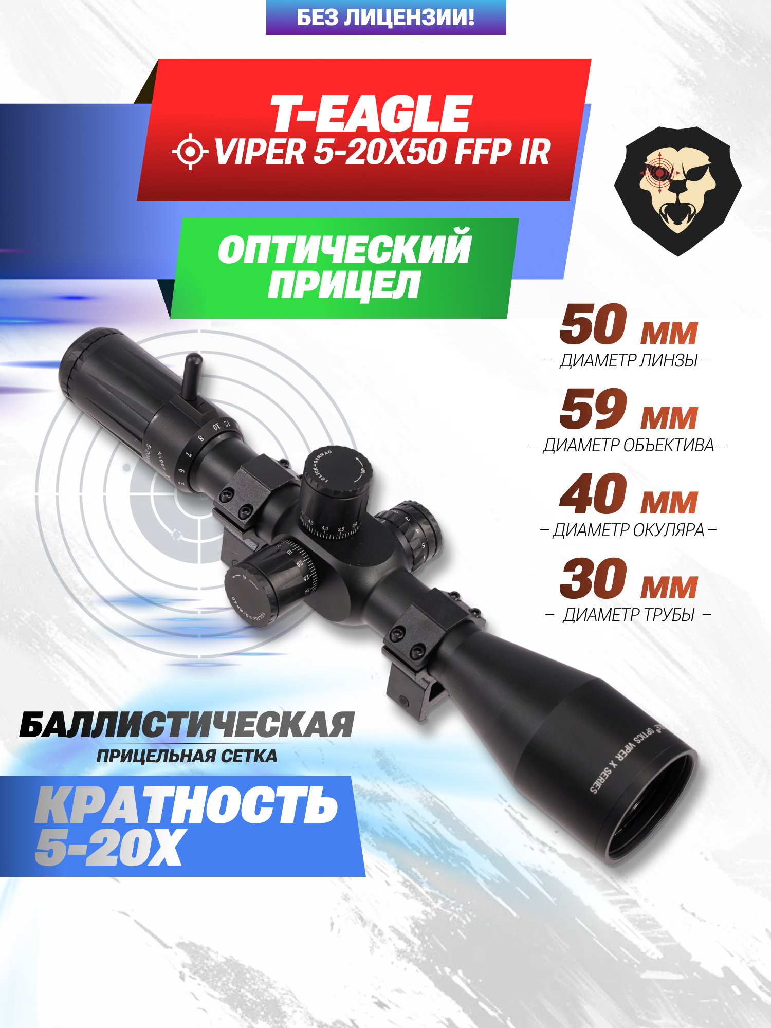 Оптический прицел T-Eagle Viper 5-20x50 FFP IR (30 мм, подсветка) купить в интернет-магазине Popadiv10.
