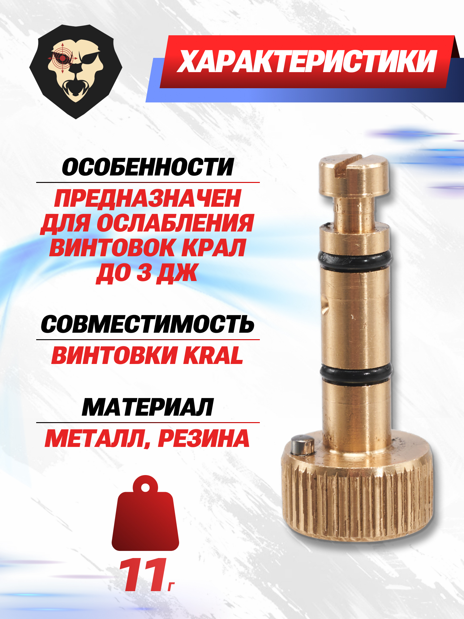 | Особенности | Предназначен для ослабления винтовок Крал до 3 Дж |