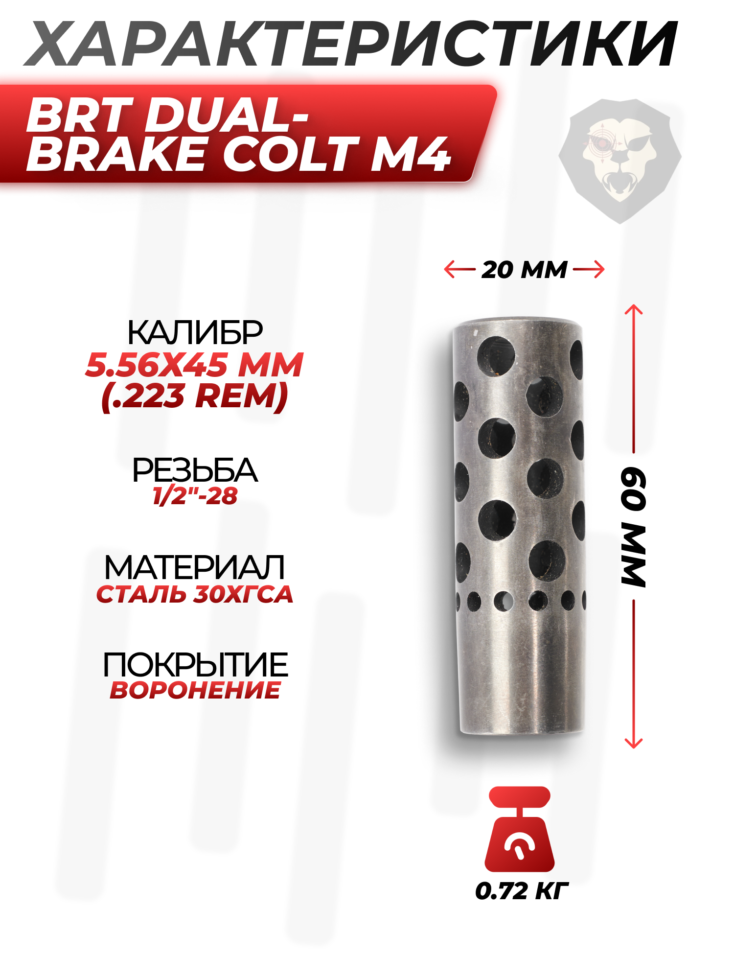 Информация о товаре "Открытый ДТК BRT Dual-brake для Colt M4 (5.56х45 мм, .223Rem, резьба 1/2-28, AR-15)" носит ознакомительный характер, и не является публичной офертой, определяемой положениями Статьи 437 Гражданского кодекса Российской Федерации, характеристики, внешний вид, цвет и комплектация могут быть изменены производителем без уведомления.