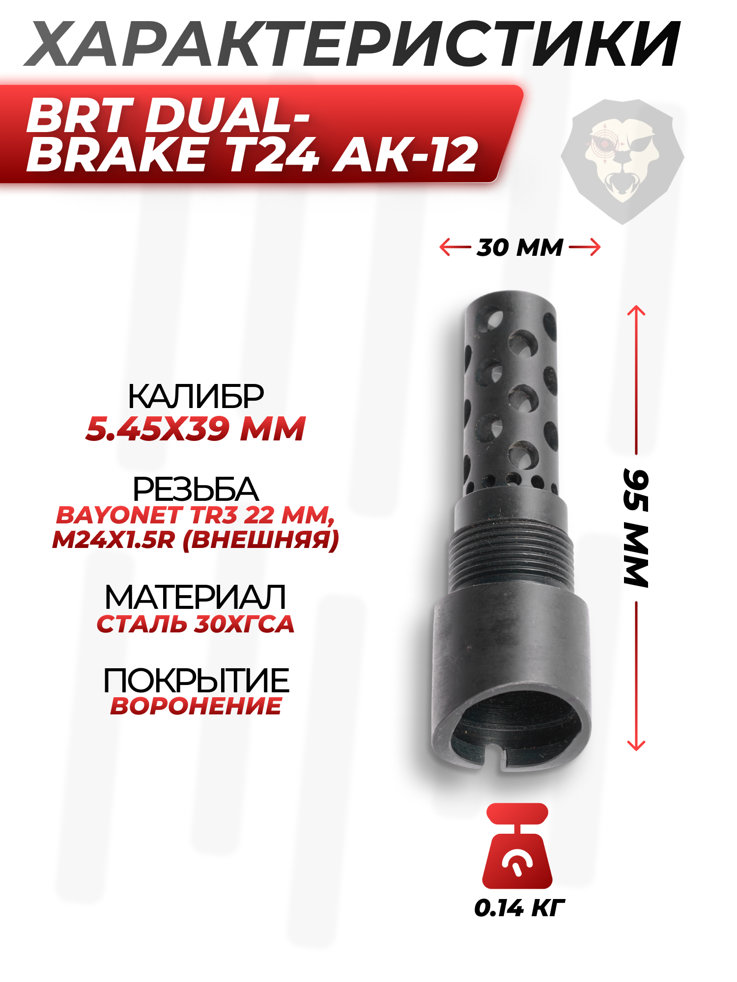 Информация о товаре "Открытый ДТК BRT Dual-brake Т24 для АК-12 (5.45x39 мм, M24x1.5R, байонет)" носит ознакомительный характер, и не является публичной офертой, определяемой положениями Статьи 437 Гражданского кодекса Российской Федерации, характеристики, внешний вид, цвет и комплектация могут быть изменены производителем без уведомления.