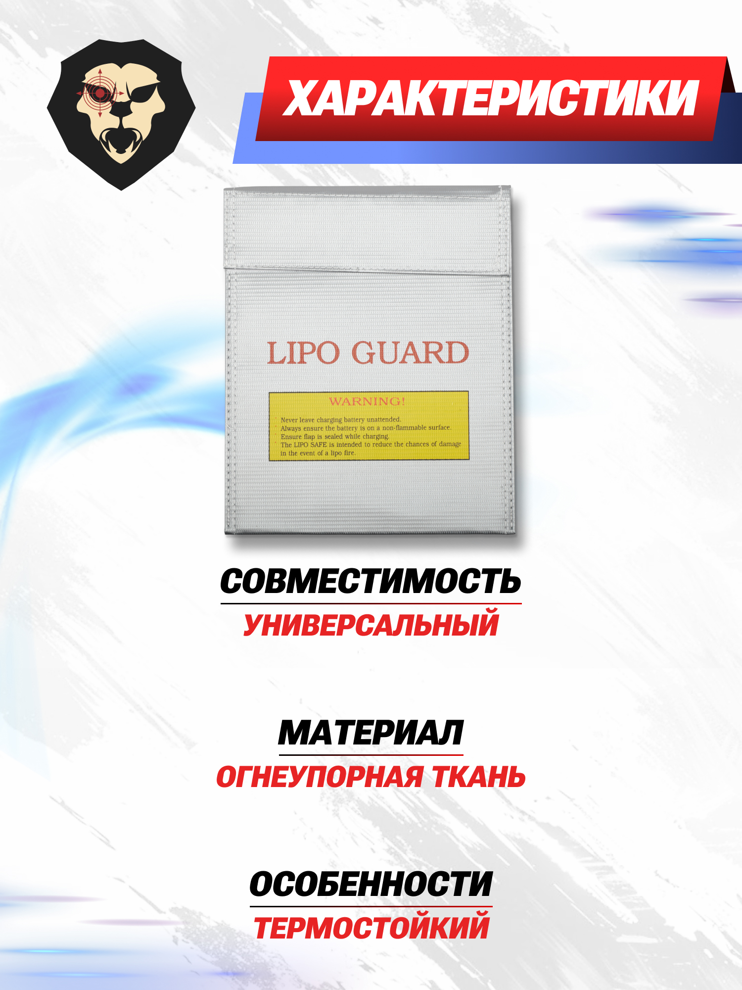 Решением этой проблемы, дающим обезопасить снаряжение и имущество владельца АКБ выступает специализированный огнеупорный пакет для аккумуляторов LiPo от компании Blue Max. Батарея размещается внутри чехла при хранении или во время зарядки, и при возгорании, пламя не распространиться наружу, благодаря применению особых термостойких тканей в качестве материала изготовления представленного пакета. Размеры изделия составляют 230x180 миллиметров, что дает располагать даже крупногабаритные аккумуляторы или сразу несколько элементов питания.