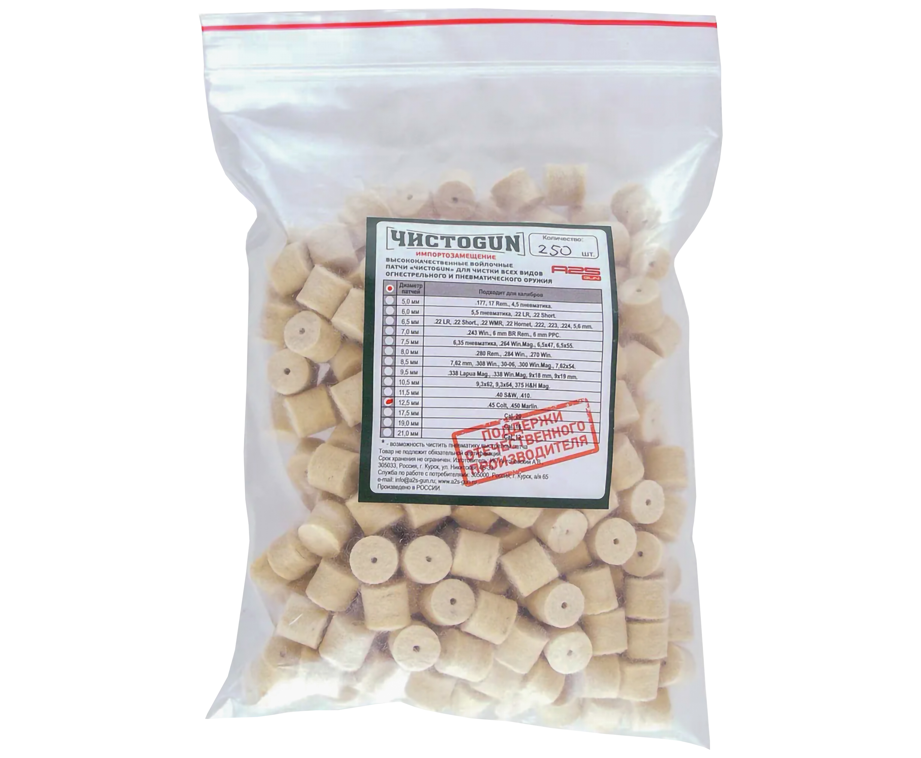 Патчи ЧистоGun для ствола .45 Colt, .450 Marlin (250 шт, диаметр 12.5 мм) купить в интернет-магазине Popadiv10.