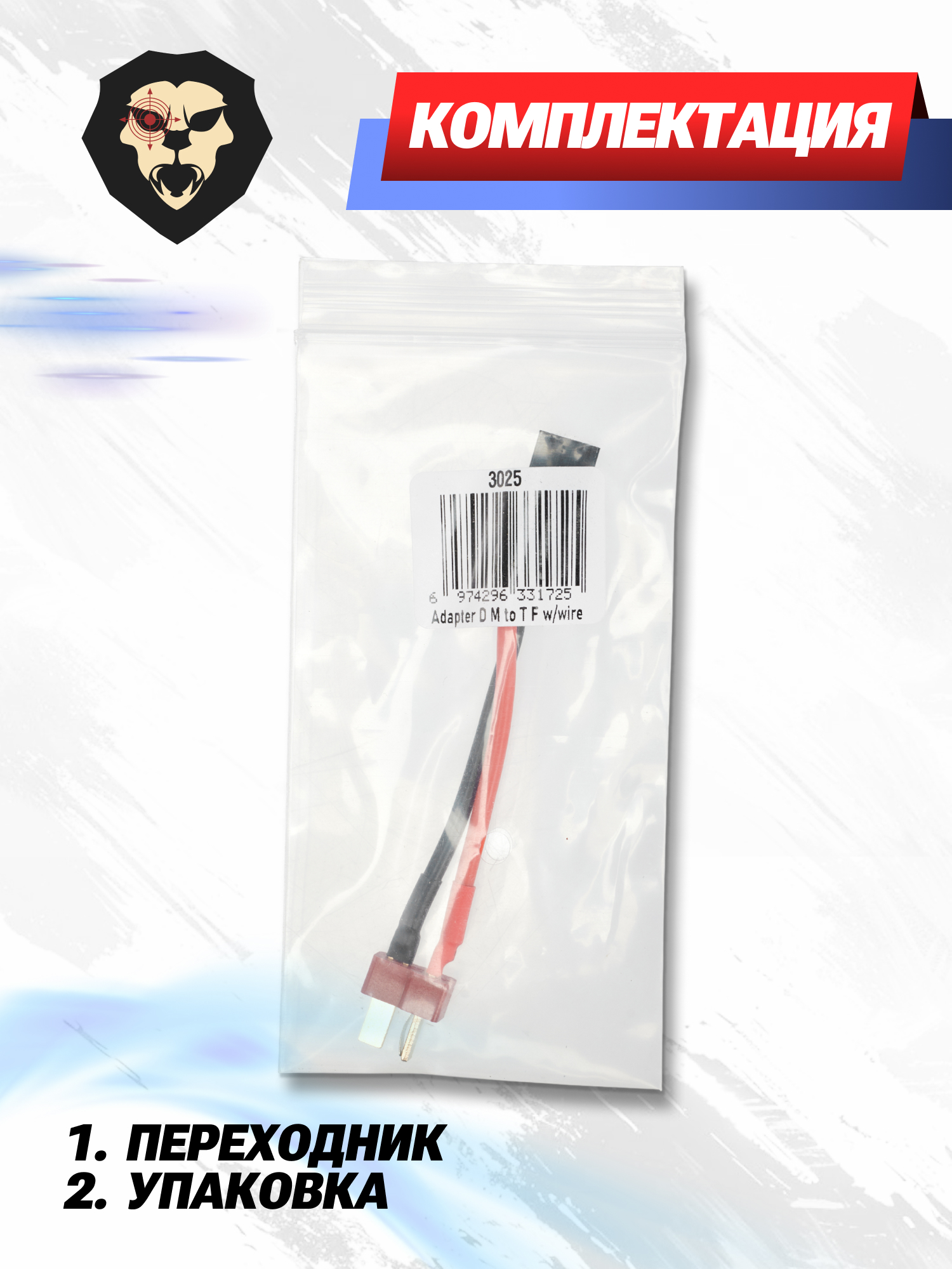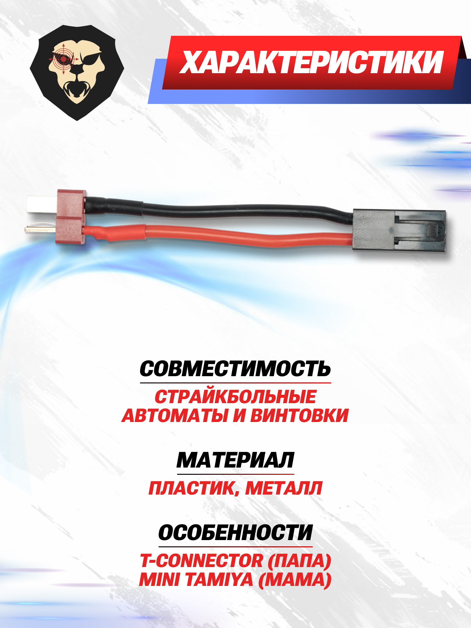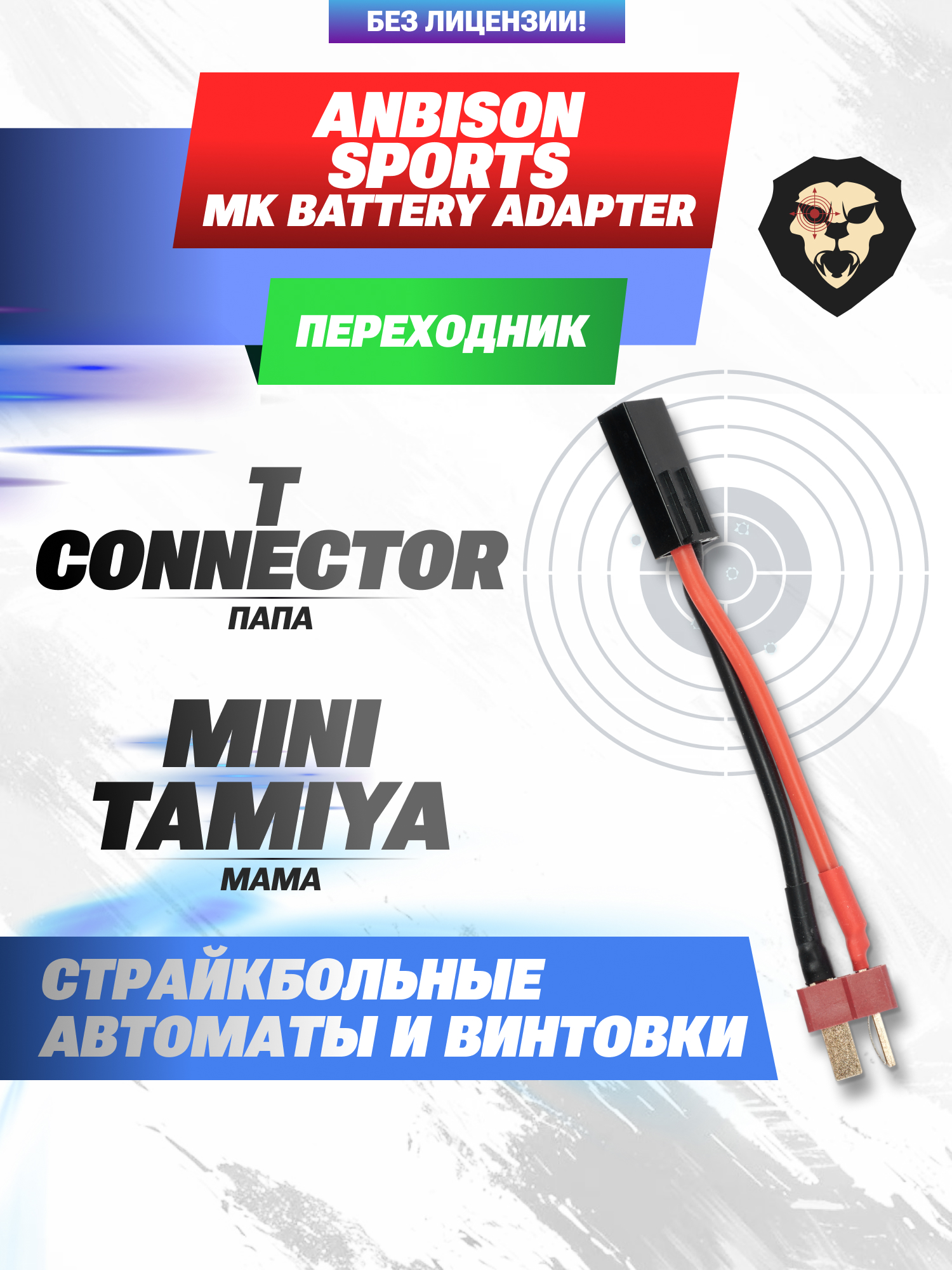 Рассматриваемый переходник для аккумулятора выпускается фирмой Anbison Sports, которая занимается изготовлением качественного и недорогого страйкболбного оснащения и аксессуаров. На одном конце адаптер содержит Т-Коннектор «Папа», подсоединяемый к соответствующему порту привода. Для подключения литиевых и никель-металлгидридных аккумуляторов предусмотрен разъем мини Тамия «Мама».