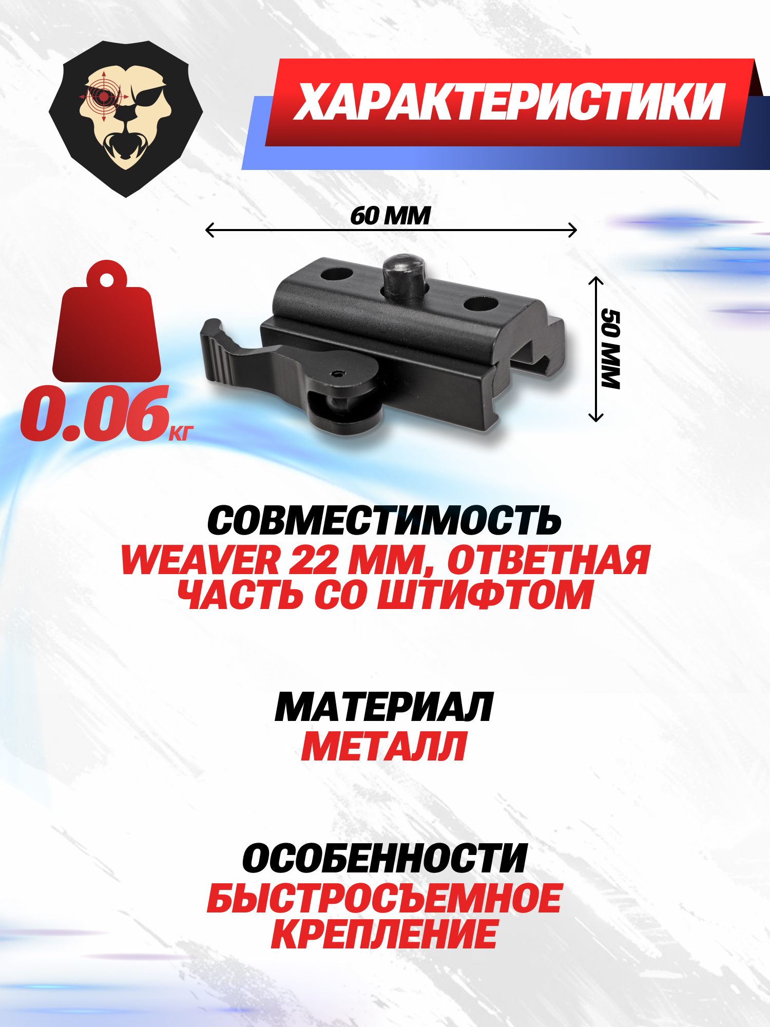 | Совместимость | Weaver 22 мм, ответная часть со штифтом |