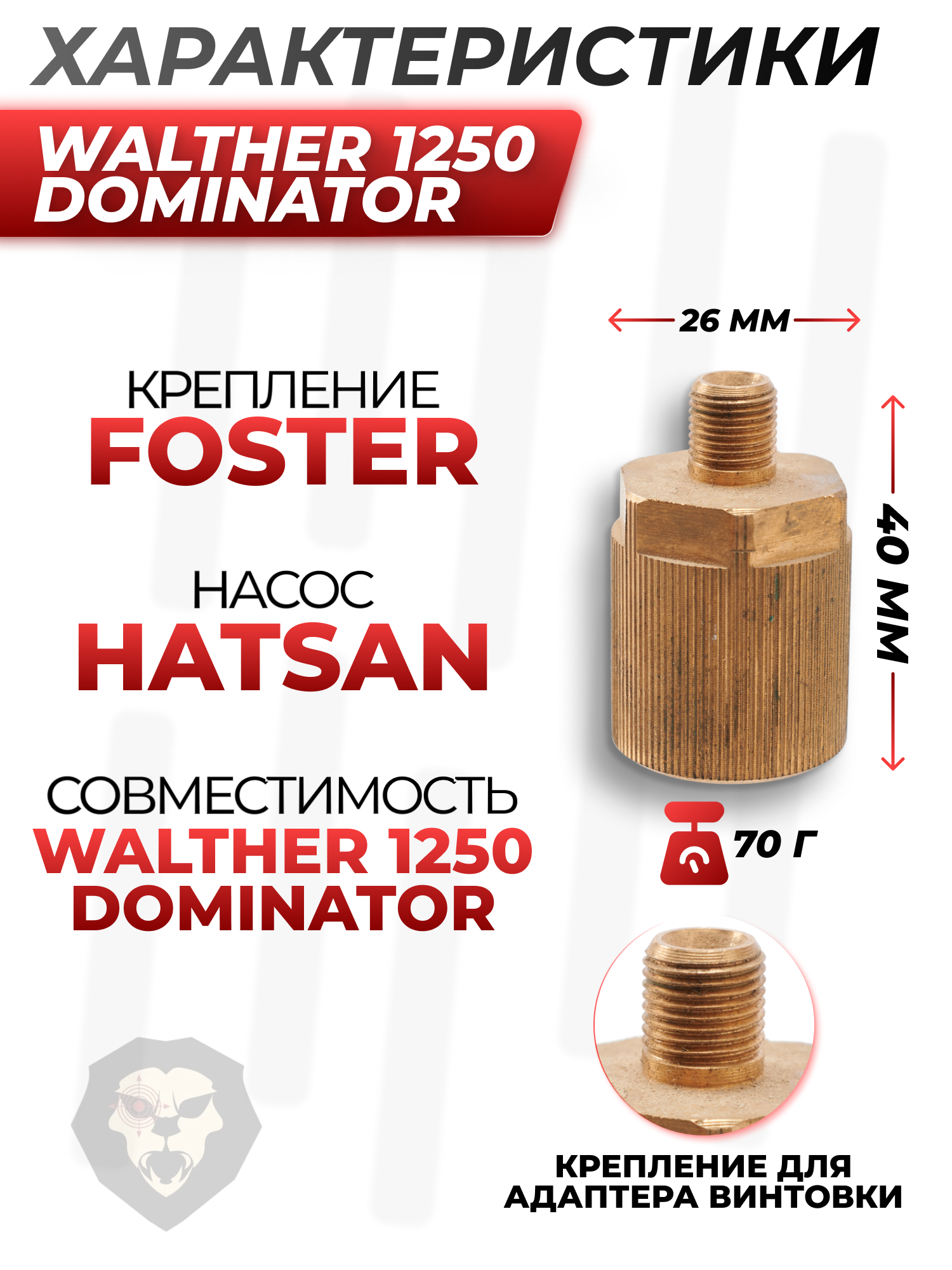 Переходник для заправки Walther 1250 Dominator насосом Hatsan (Umarex) купить в интернет-магазине Popadiv10.