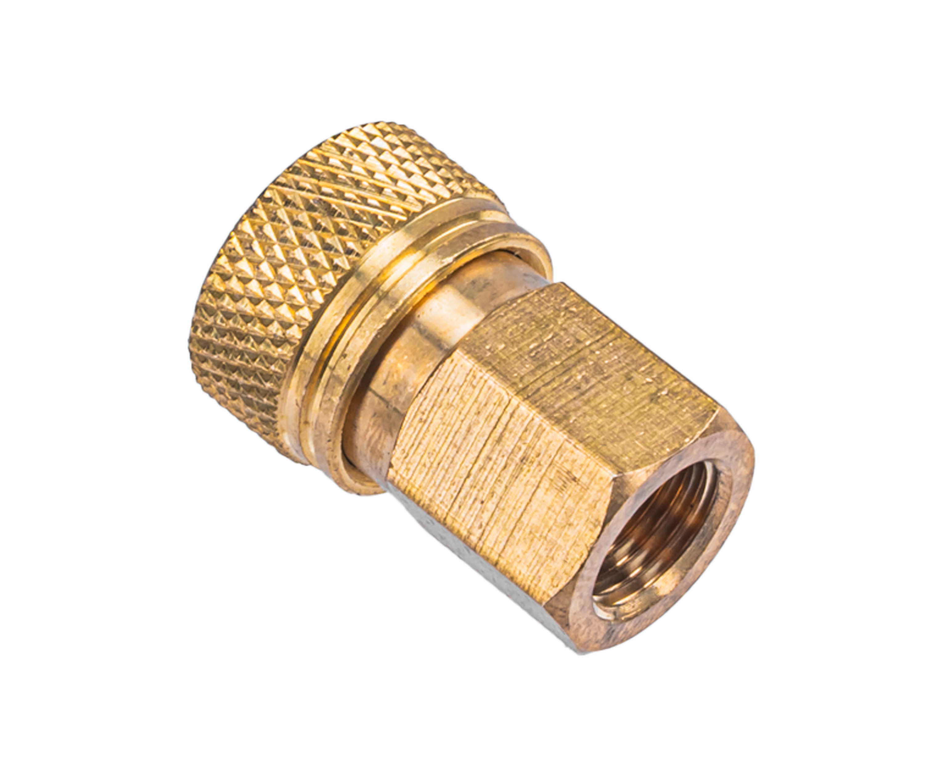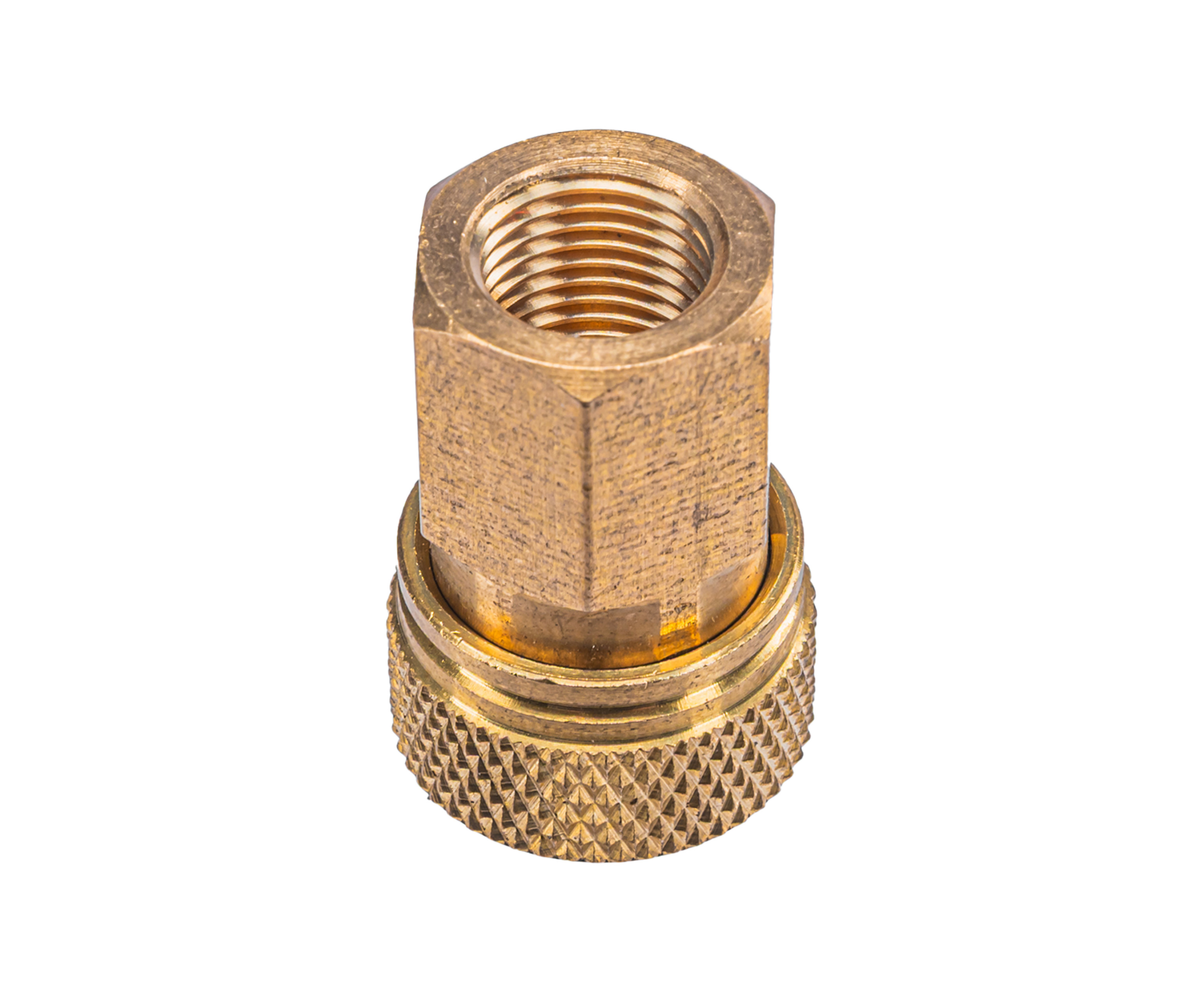 Габариты прибора равны 25х20х20 мм, а внутри модели установлен подпружиненный фиксатор. Для защелкивания механизма потребуется оттянуть внешнее кольцо, за счет чего можно без труда осуществить установку или снятие разъемов. Благодаря этому форм-фактору стрелок значительно сэкономит время при подготовке насосов и компрессоров в рабочее состояние.