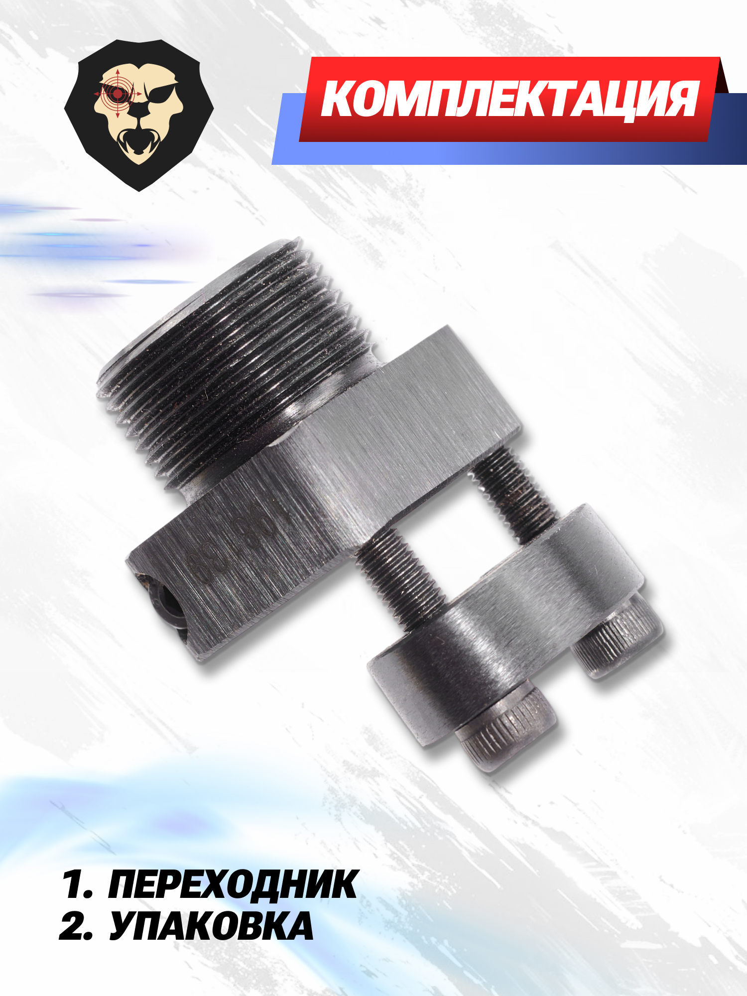 При изготовлении переходника применяется металлический сплав и легированная сталь, а для предотвращения возникновения коррозии поверхность деталей обрабатывается специальным защитным составом. Изделие выделяется наличием внешней резьбы M24x1.5R, которая позволяет накручивать любые совместимые с калибром оружия дульные устройства, например закрытые ДТК или «банки». Адаптер не требует постоянного демонтажа при снятии тормоза-компенсатора, а небольшая масса изделия минимизирует воздействие на эргономику винтовки.