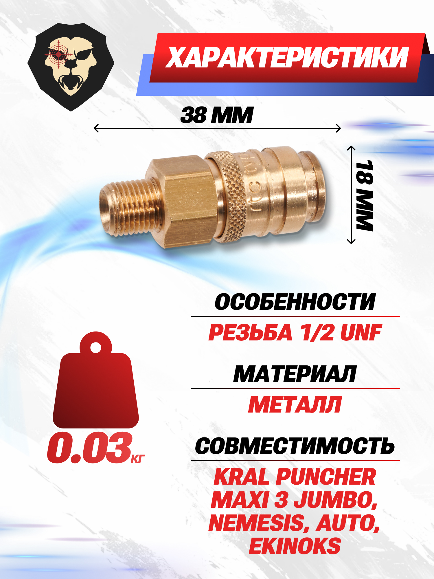 | Совместимость | Пневматические винтовки Kral Puncher Maxi 3 Jumbo, Nemesis, Auto, Ekinoks |