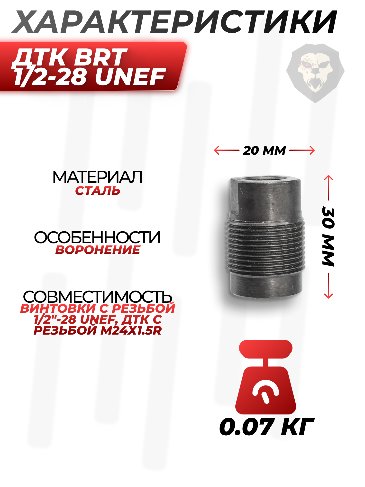 | Совместимость | Винтовки с резьбой 1/2"-28 UNEF, ДТК с резьбой М24х1.5R |