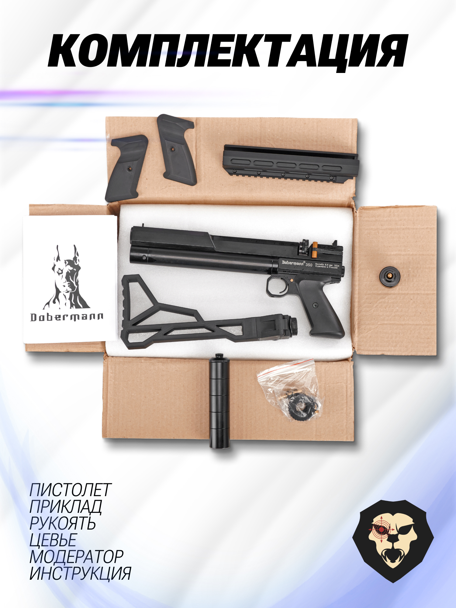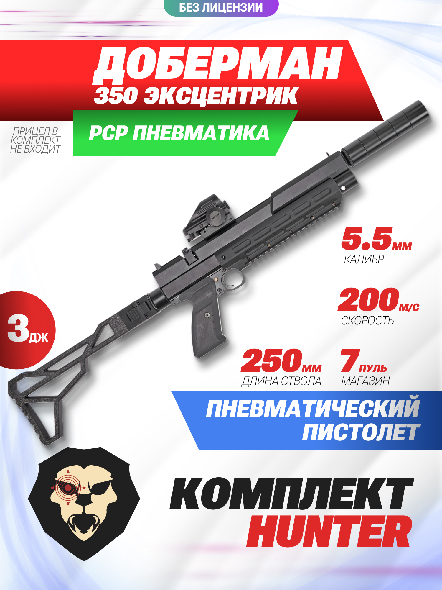 Пистолет Dobermann 350 Эксцентрик 5.5 мм комплект Hunter подарочный (250 мм, приклад, цевье, рукоять, черный) купить в интернет-магазине Popadiv10.