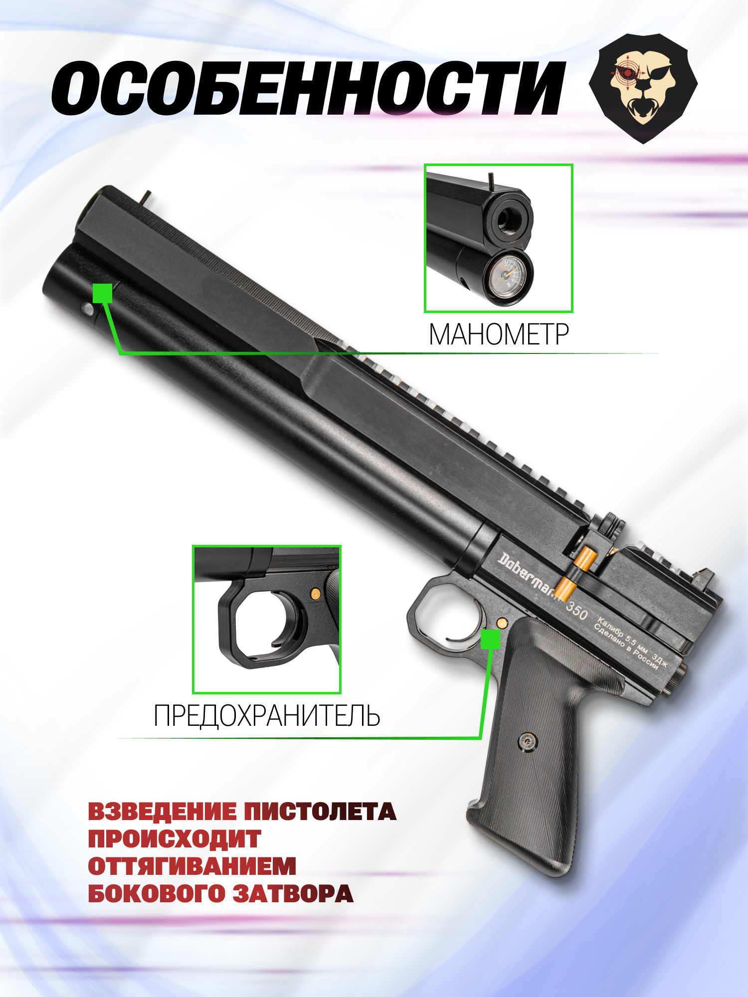 Информация о товаре "Пистолет Dobermann 350 Эксцентрик 5.5 мм комплект Hunter подарочный (250 мм, приклад, цевье, рукоять, черный)" носит ознакомительный характер, и не является публичной офертой, определяемой положениями Статьи 437 Гражданского кодекса Российской Федерации, характеристики, внешний вид, цвет и комплектация могут быть изменены производителем без уведомления.