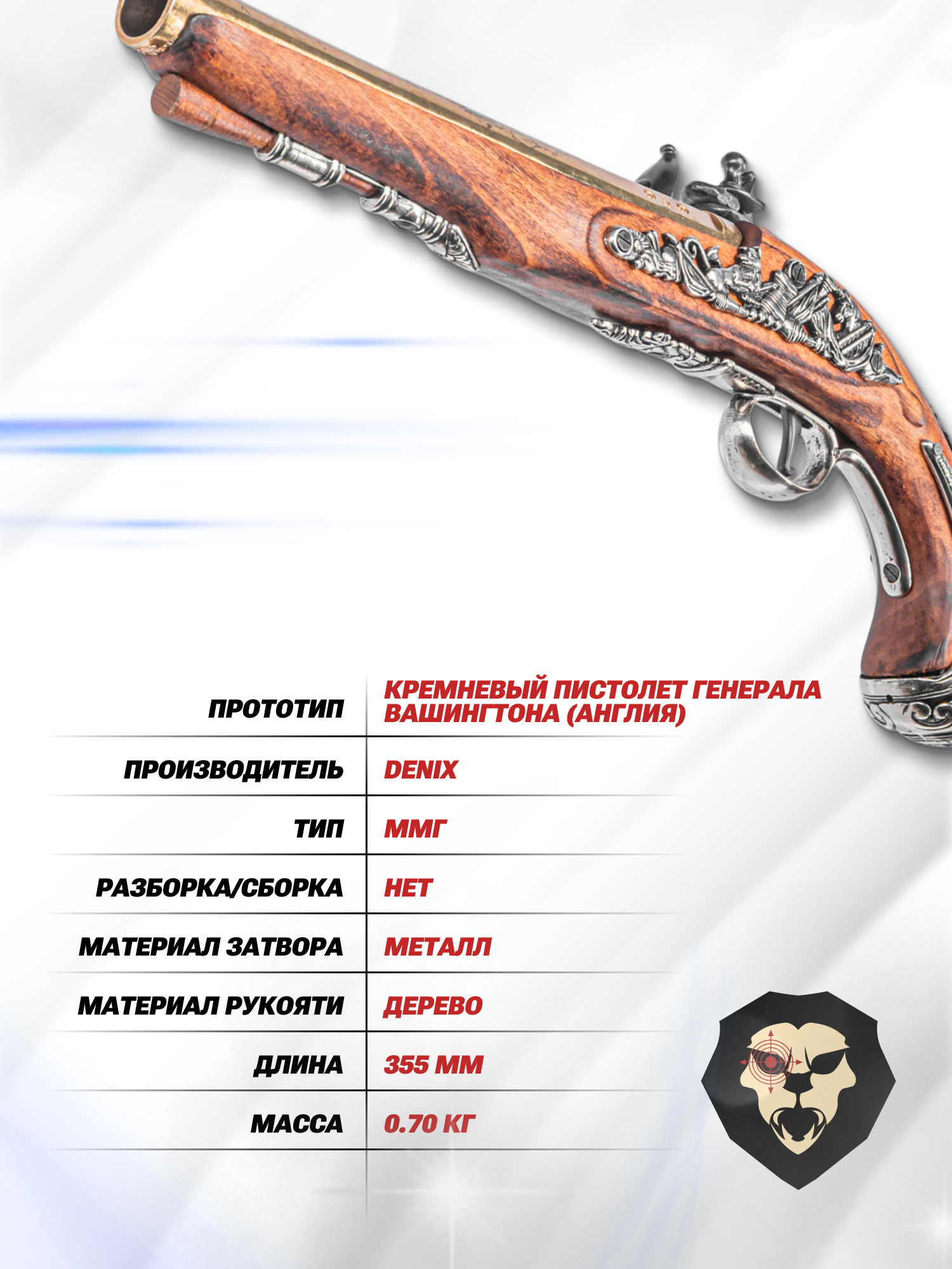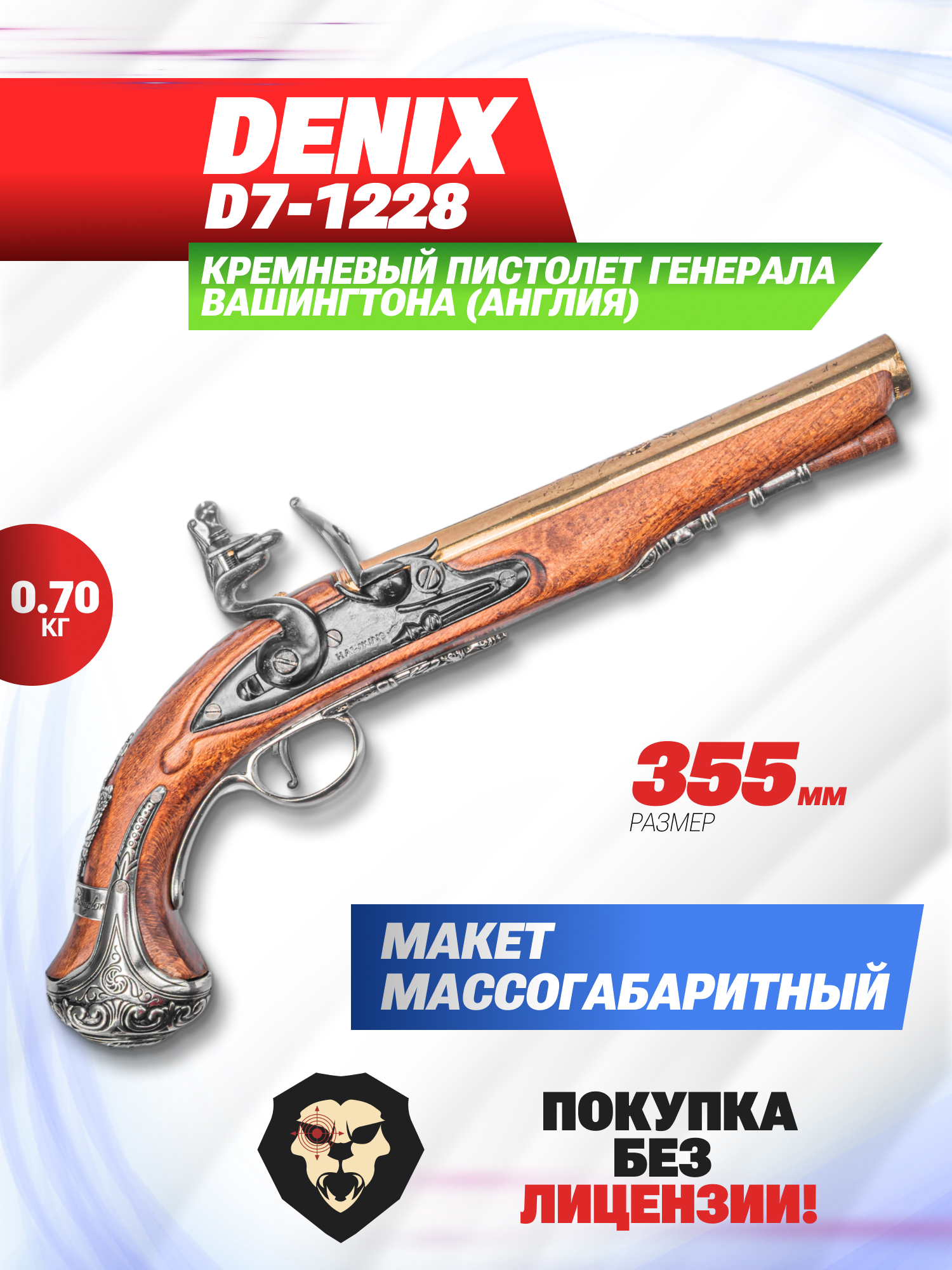 Макет кремневого пистолета генерала Вашингтона Denix D7-1228 (Англия, XVIII в, ММГ) купить в интернет-магазине Popadiv10.