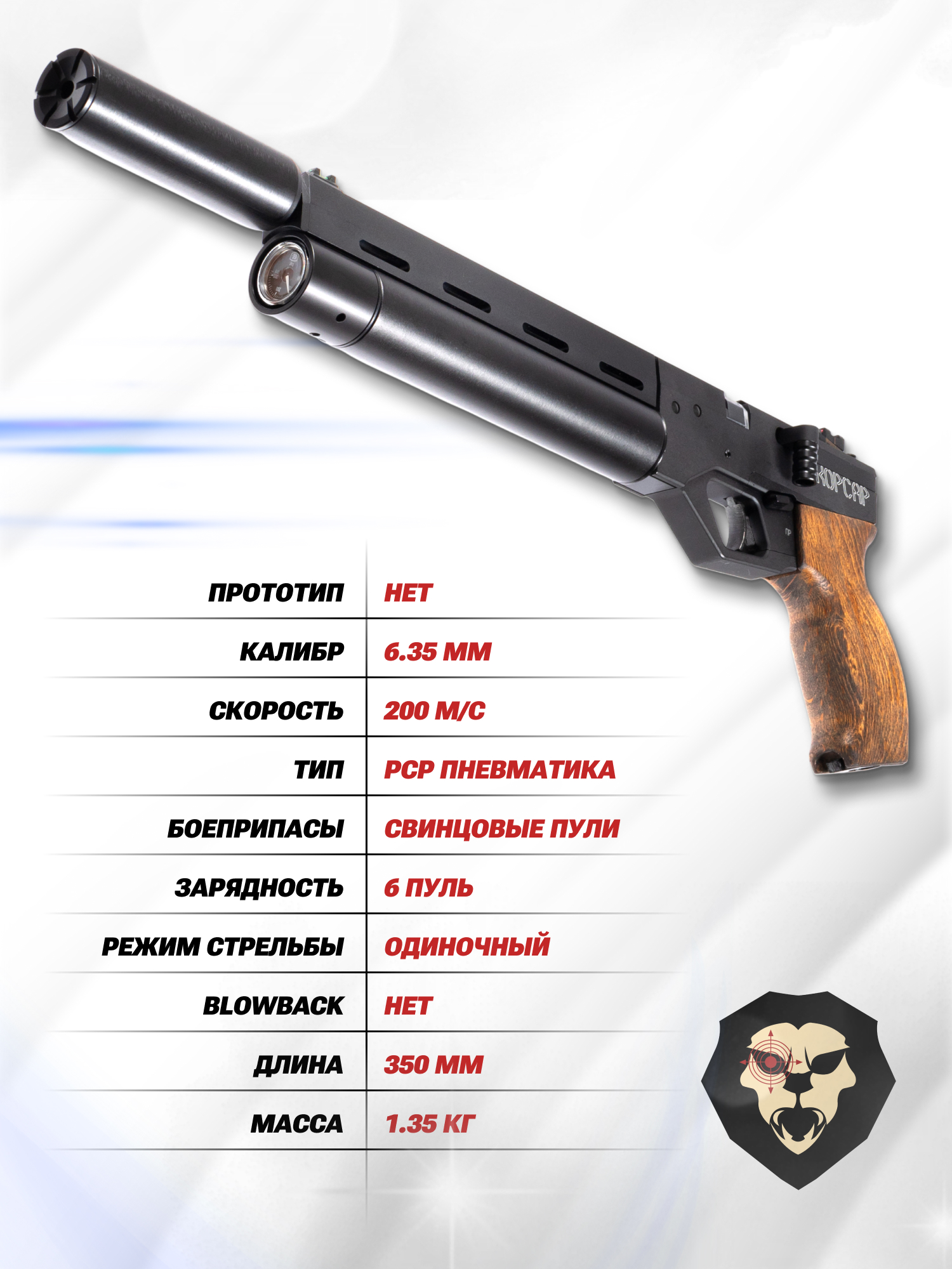 Информация о товаре "Пистолет KrugerGun Корсар 6.35 мм комплект Hunter подарочный (D32, 240 мм, манометр, приклад, цевье)" носит ознакомительный характер, и не является публичной офертой, определяемой положениями Статьи 437 Гражданского кодекса Российской Федерации, характеристики, внешний вид, цвет и комплектация могут быть изменены производителем без уведомления.