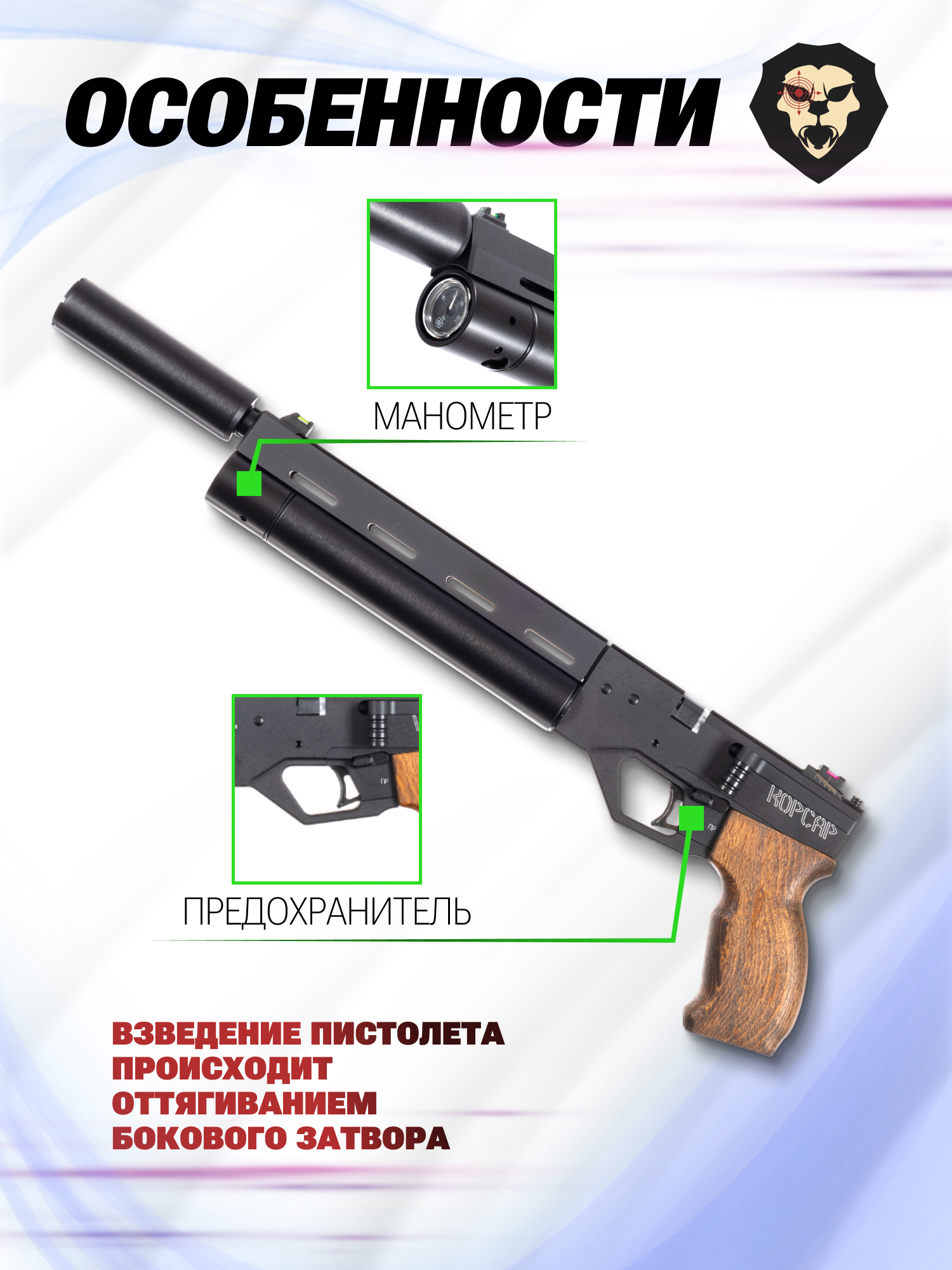 Пистолет KrugerGun Корсар 6.35 мм комплект Hunter подарочный (D32, 240 мм, манометр, приклад, цевье) купить в интернет-магазине Popadiv10.