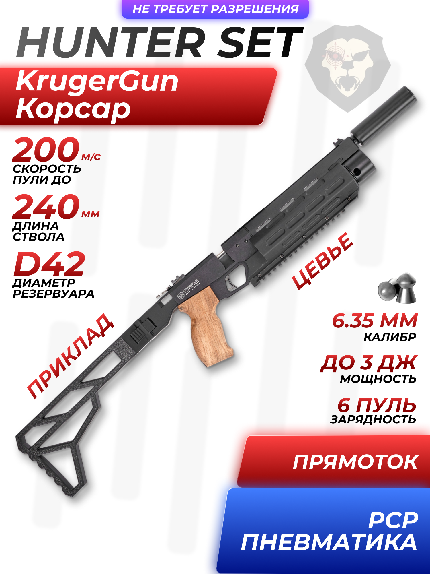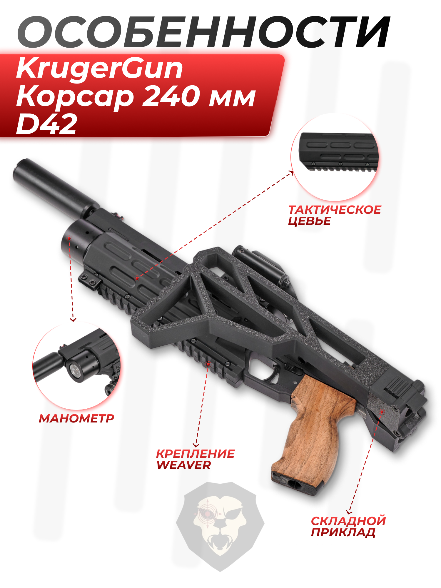 Пистолет KrugerGun Корсар 6.35 мм комплект Hunter подарочный (D42, 240 мм, манометр, приклад, цевье) купить в интернет-магазине Popadiv10.