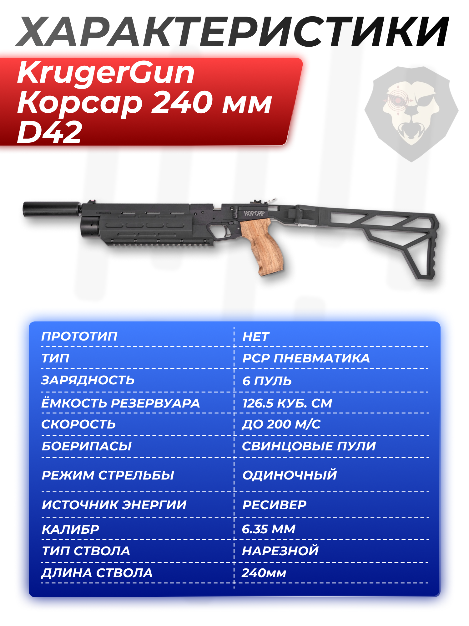 Информация о товаре "Пистолет KrugerGun Корсар 6.35 мм комплект Hunter подарочный (D42, 240 мм, манометр, приклад, цевье)" носит ознакомительный характер, и не является публичной офертой, определяемой положениями Статьи 437 Гражданского кодекса Российской Федерации, характеристики, внешний вид, цвет и комплектация могут быть изменены производителем без уведомления.