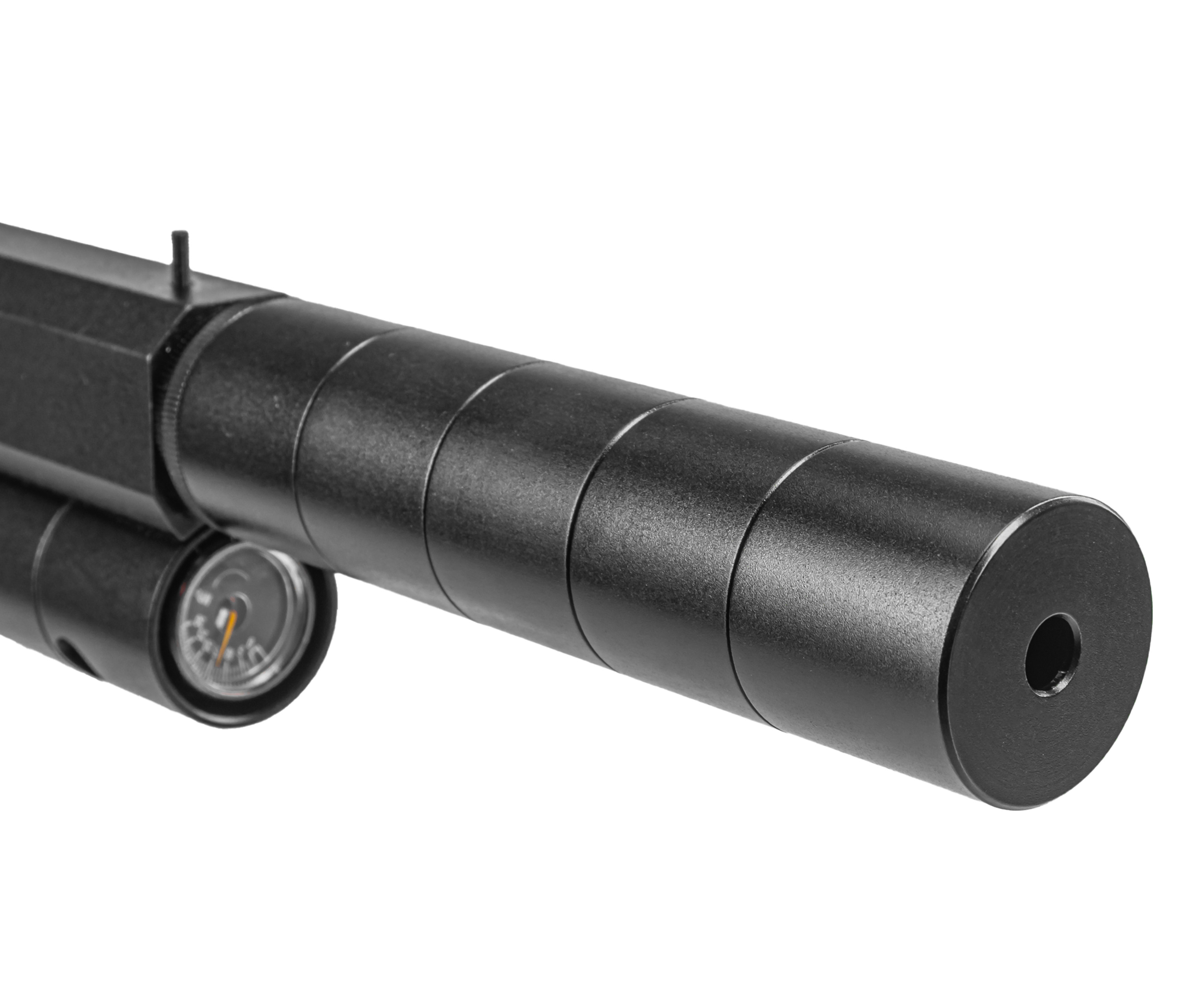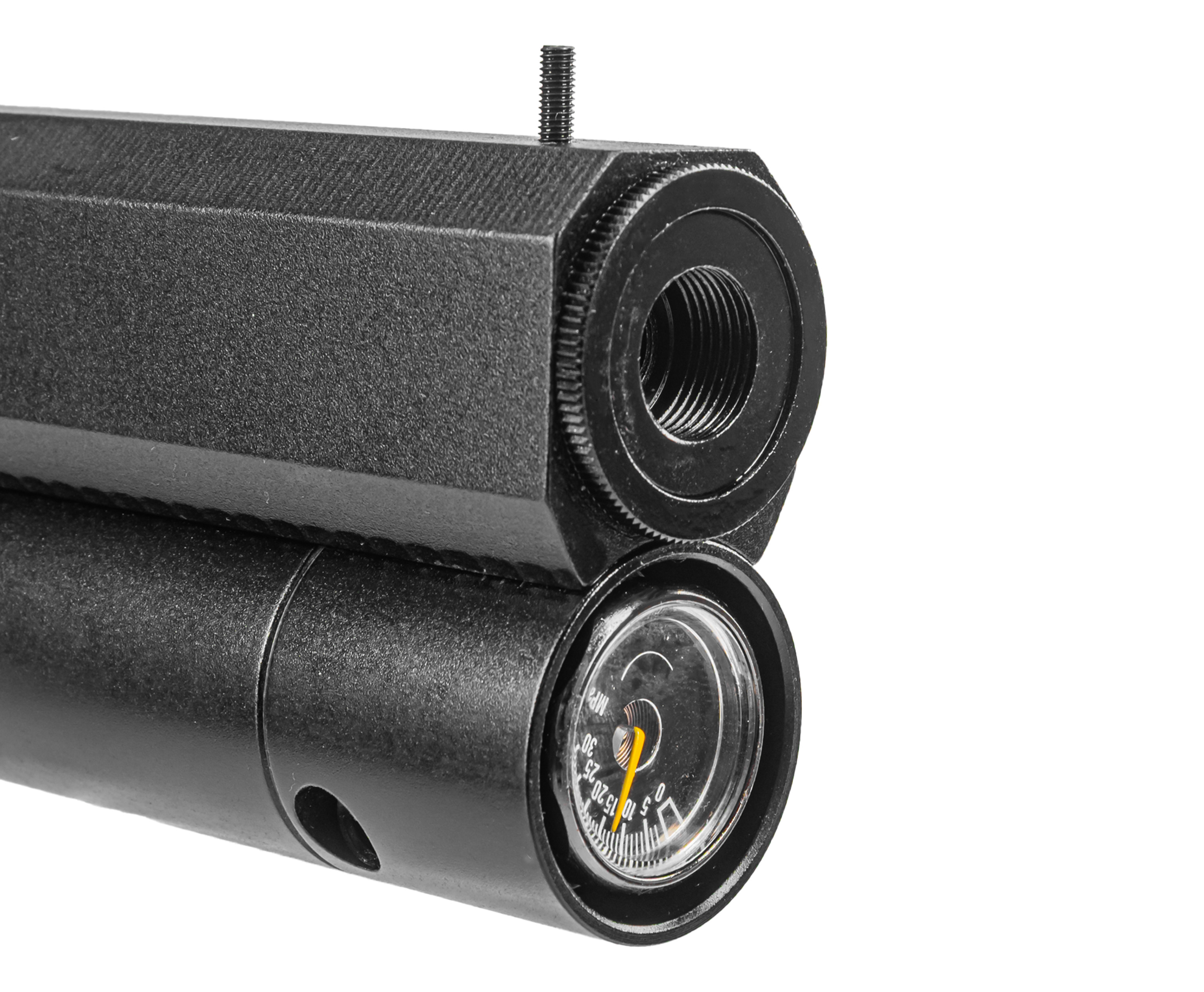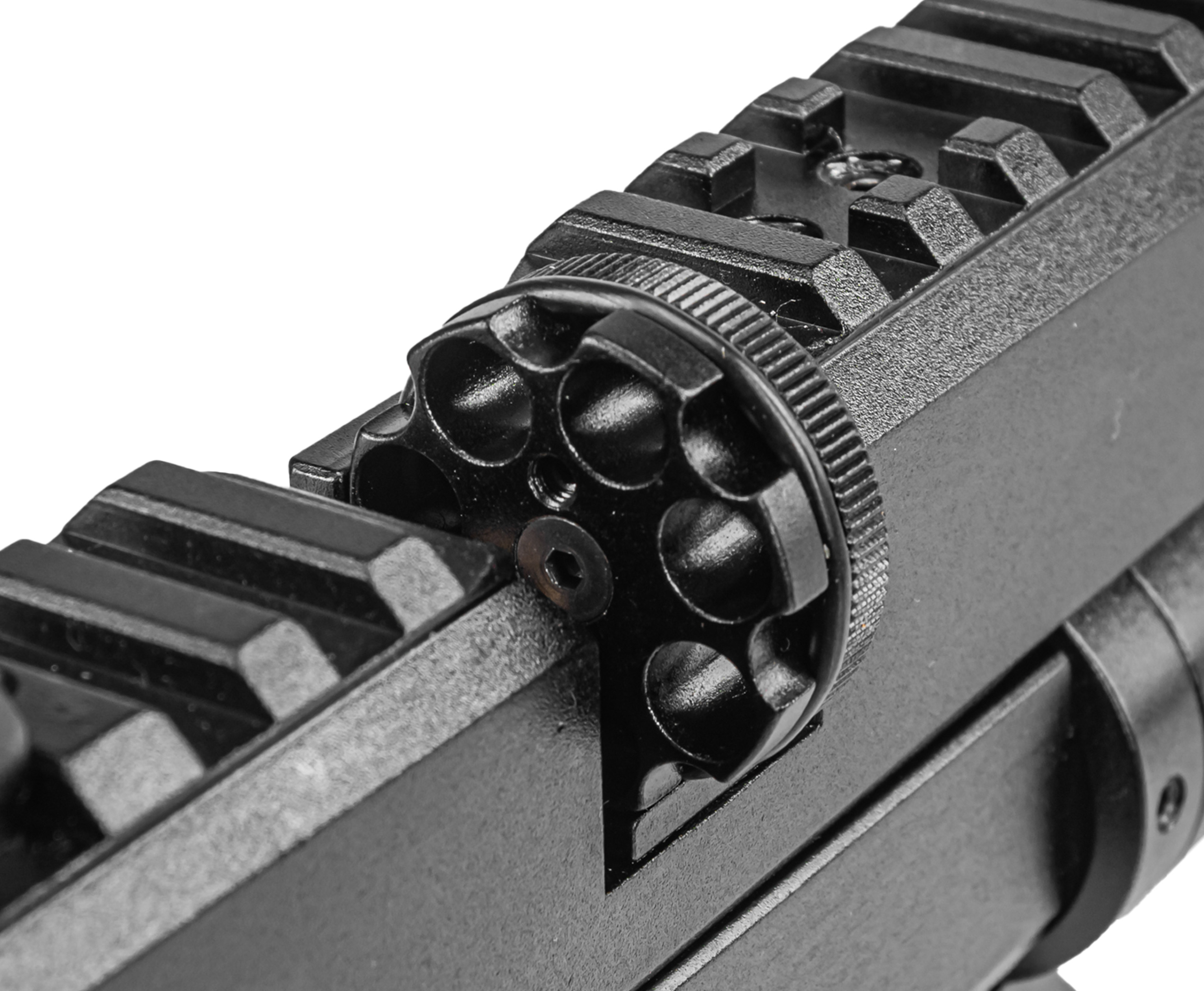 Пневматика Доберман функционирует по принципу предварительного заполнения подствольного 108-и кубового резервуара воздухом при помощи насоса через переходные быстросъемные штуцера. Контроль за закачкой газа ведется при помощи информативной шкалы манометра, смонтированного у дульного среза пистолета. Баллон с утолщенными стенками содержит защиту от избыточного наполнения, а рабочее давление составляет 250 Бар.