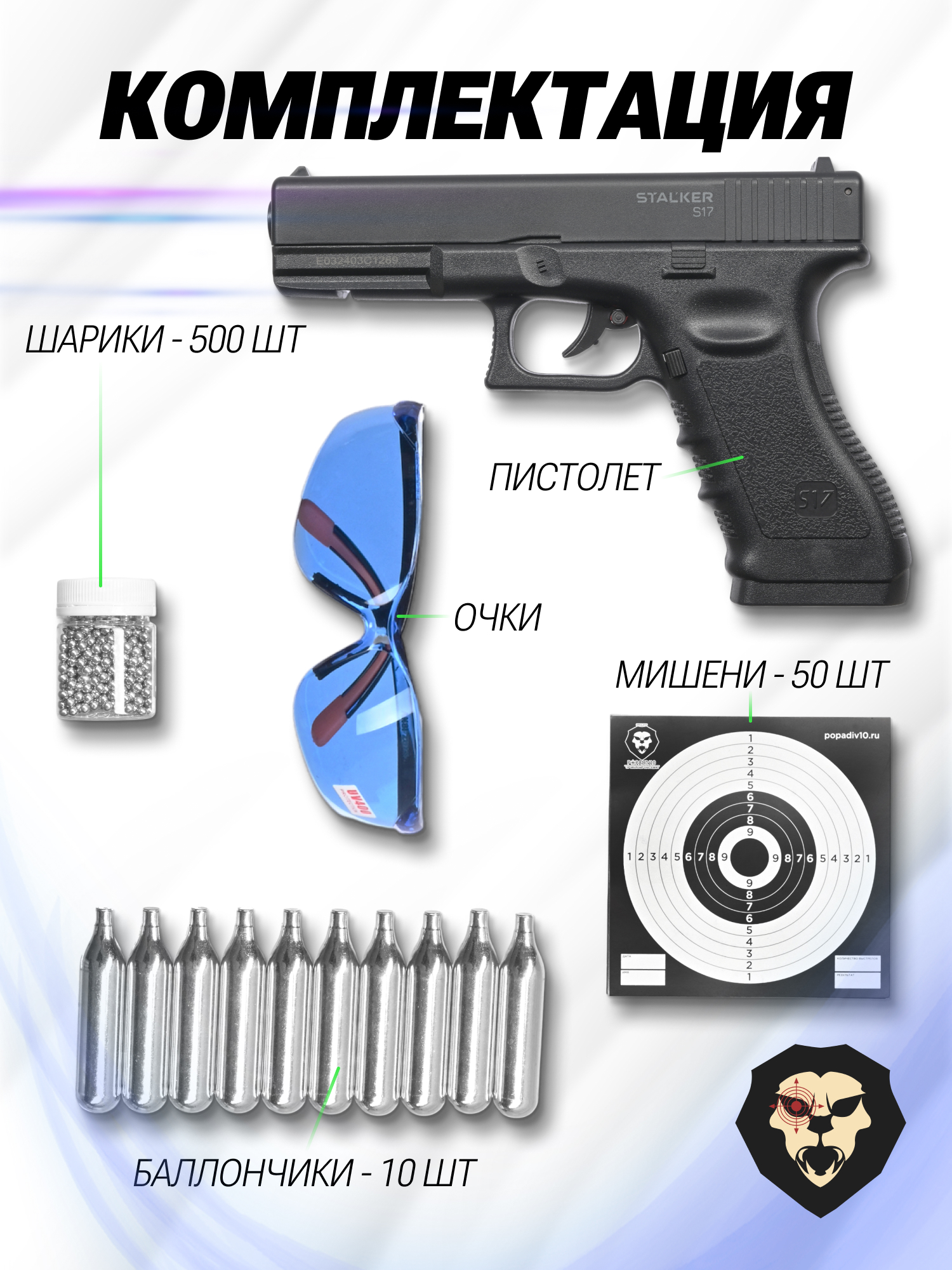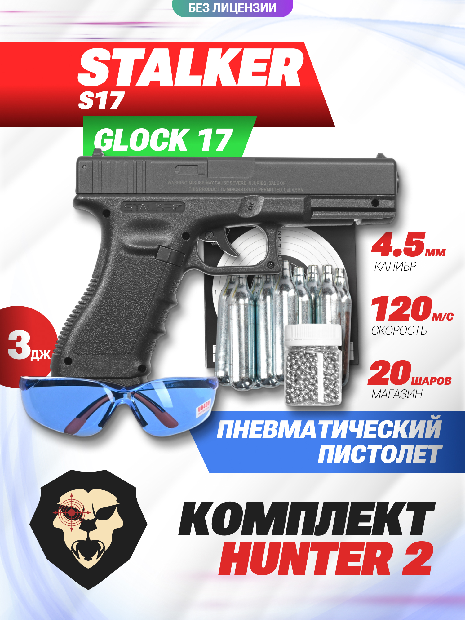 Пистолет пневматический Stalker S17 4.5 мм комплект Hunter подарочный №2 (Glock 17, 10 баллонов, 500 шаров, 50 мишеней, очки) купить в интернет-магазине Popadiv10.
