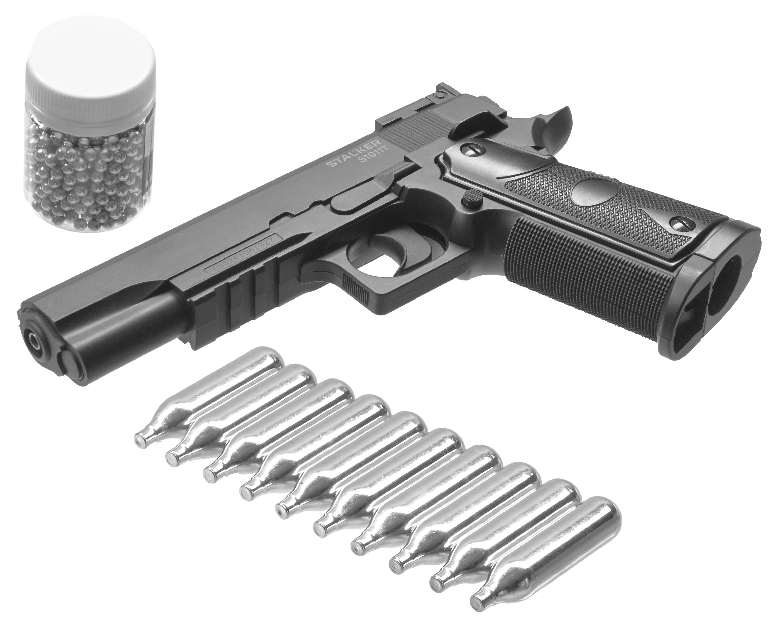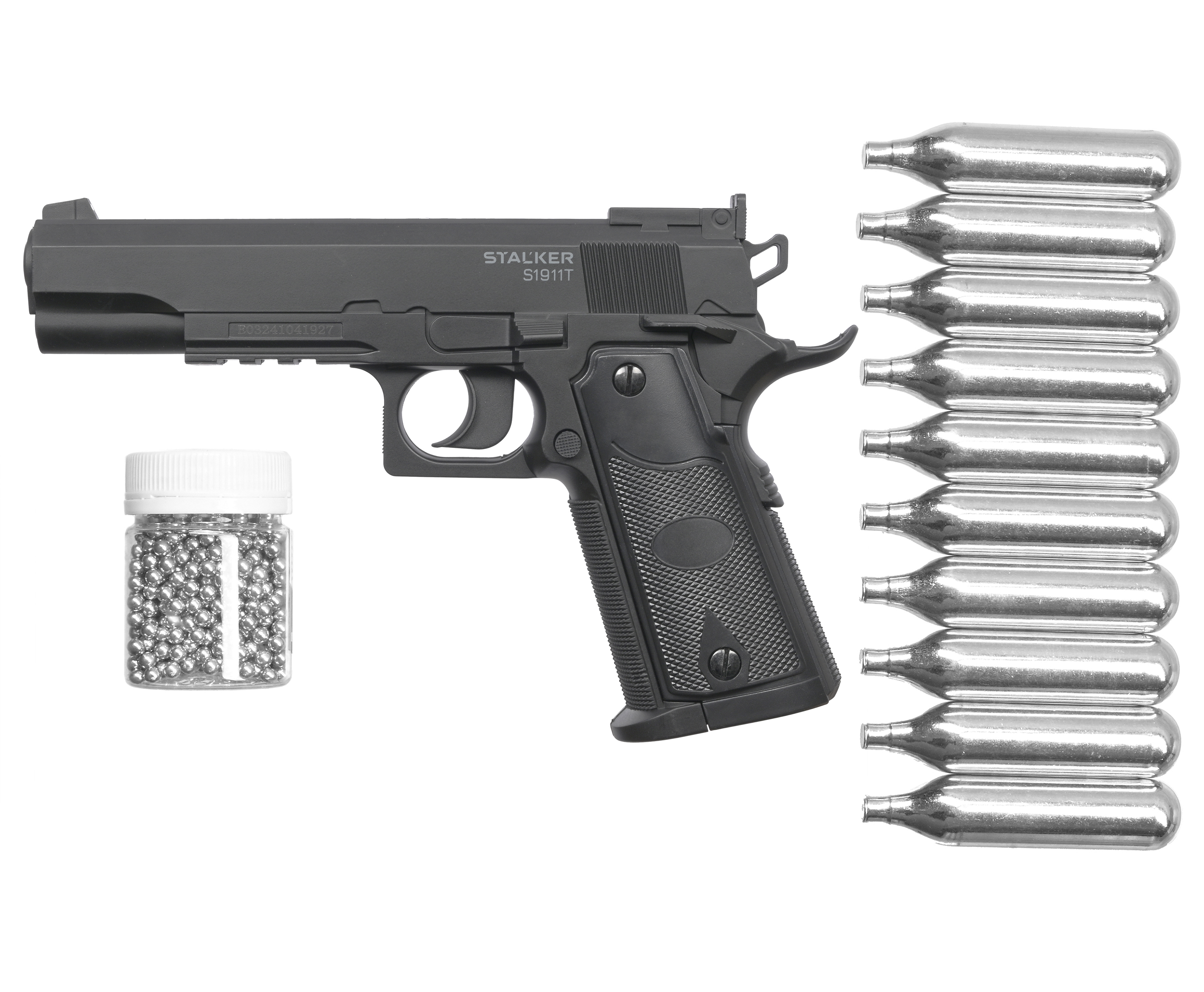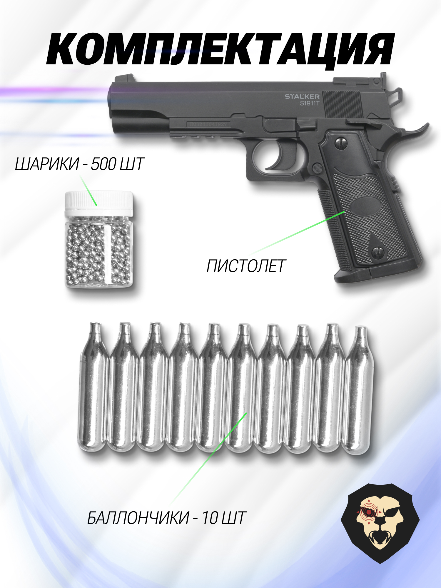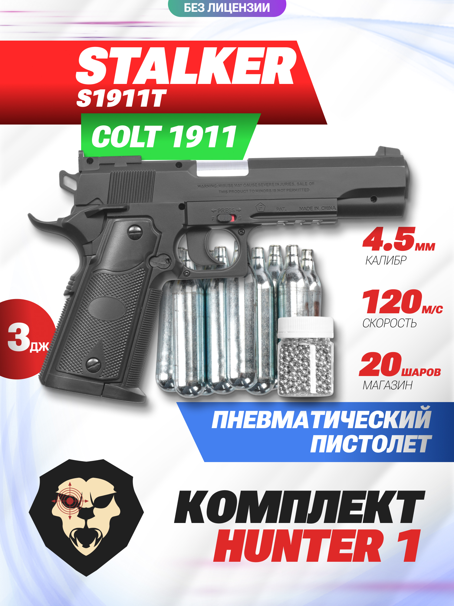 Пистолет пневматический Stalker S1911T комплект Hunter подарочный №1 (4.5 мм, Colt 1911, 10 баллонов, 500 шаров) купить в интернет-магазине Popadiv10.