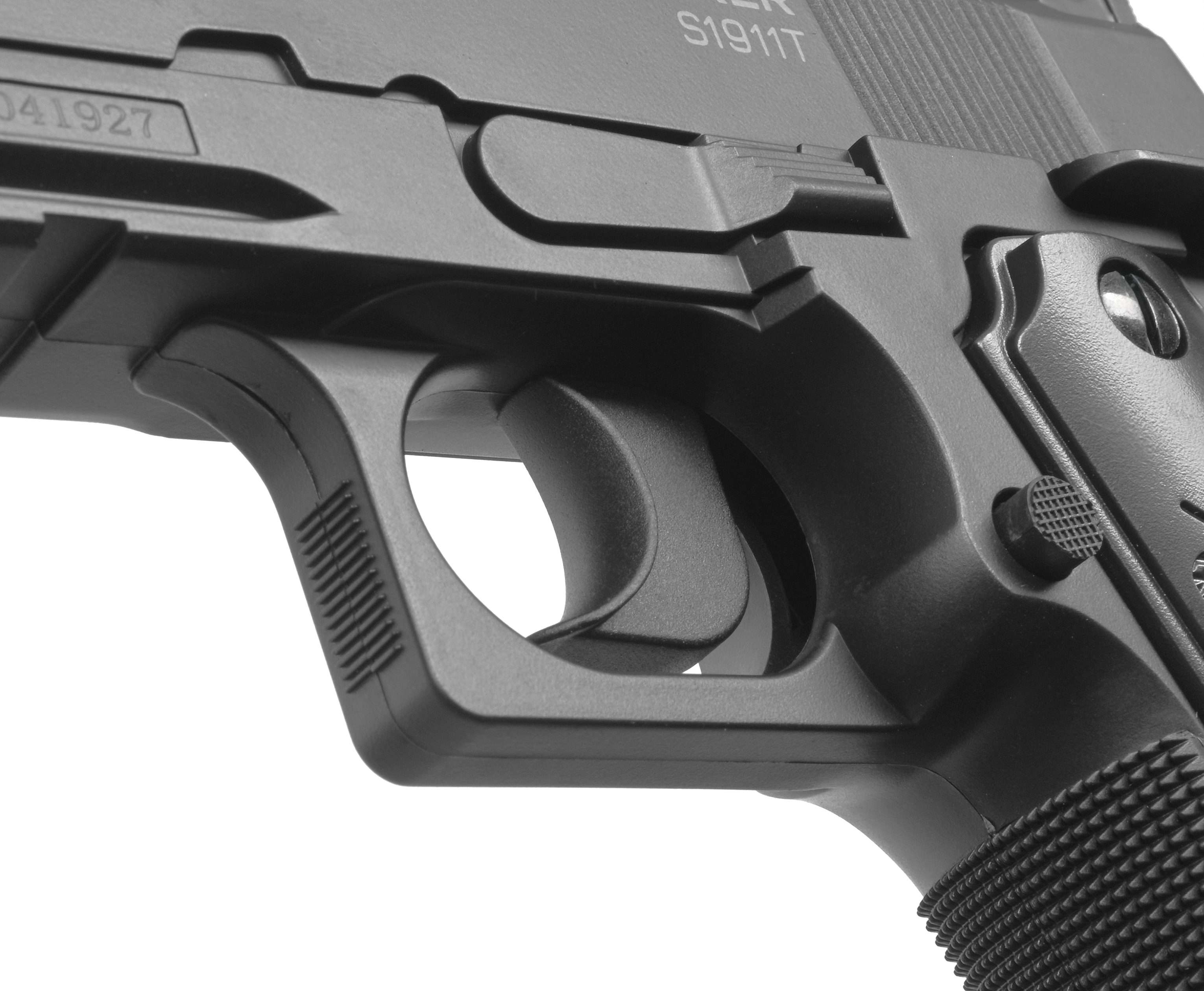 Как уже было сказано выше модель S1911T базируется на базе классического Кольта, в который внесли современные решения. Из таковых следует выделить планку Weaver 22 мм, разместившуюся на передней части рамки пистолета. Наличие такого интерфейса сделало возможным крепление фонариков и лазеров, за счет чего можно повысить комфорт стрельбы.