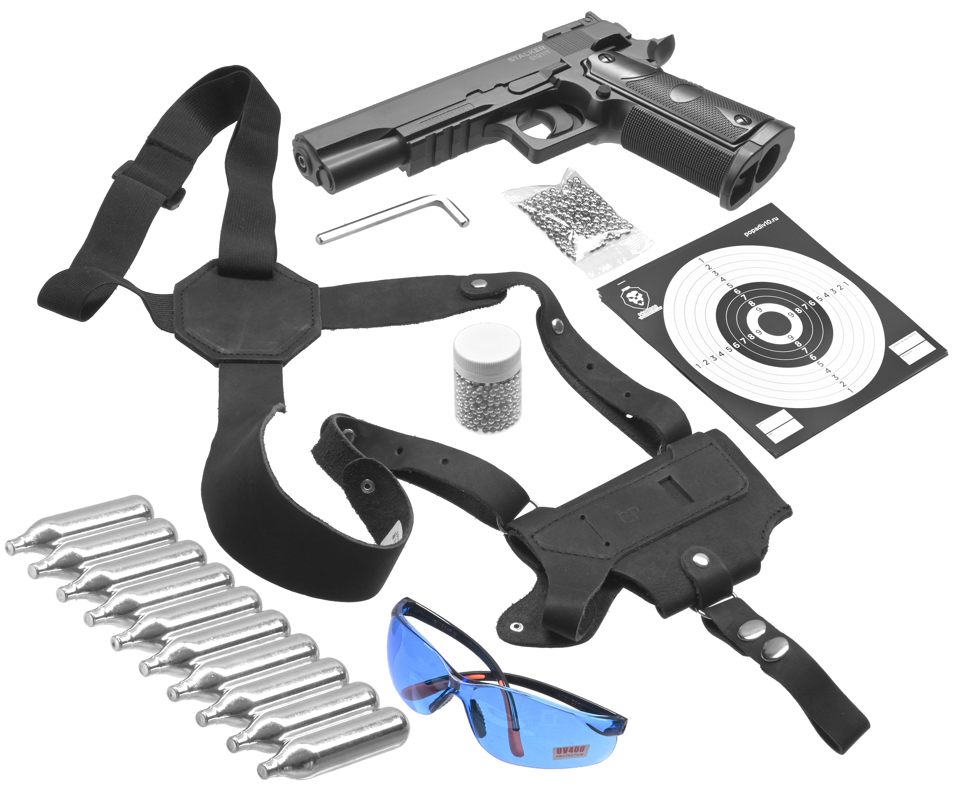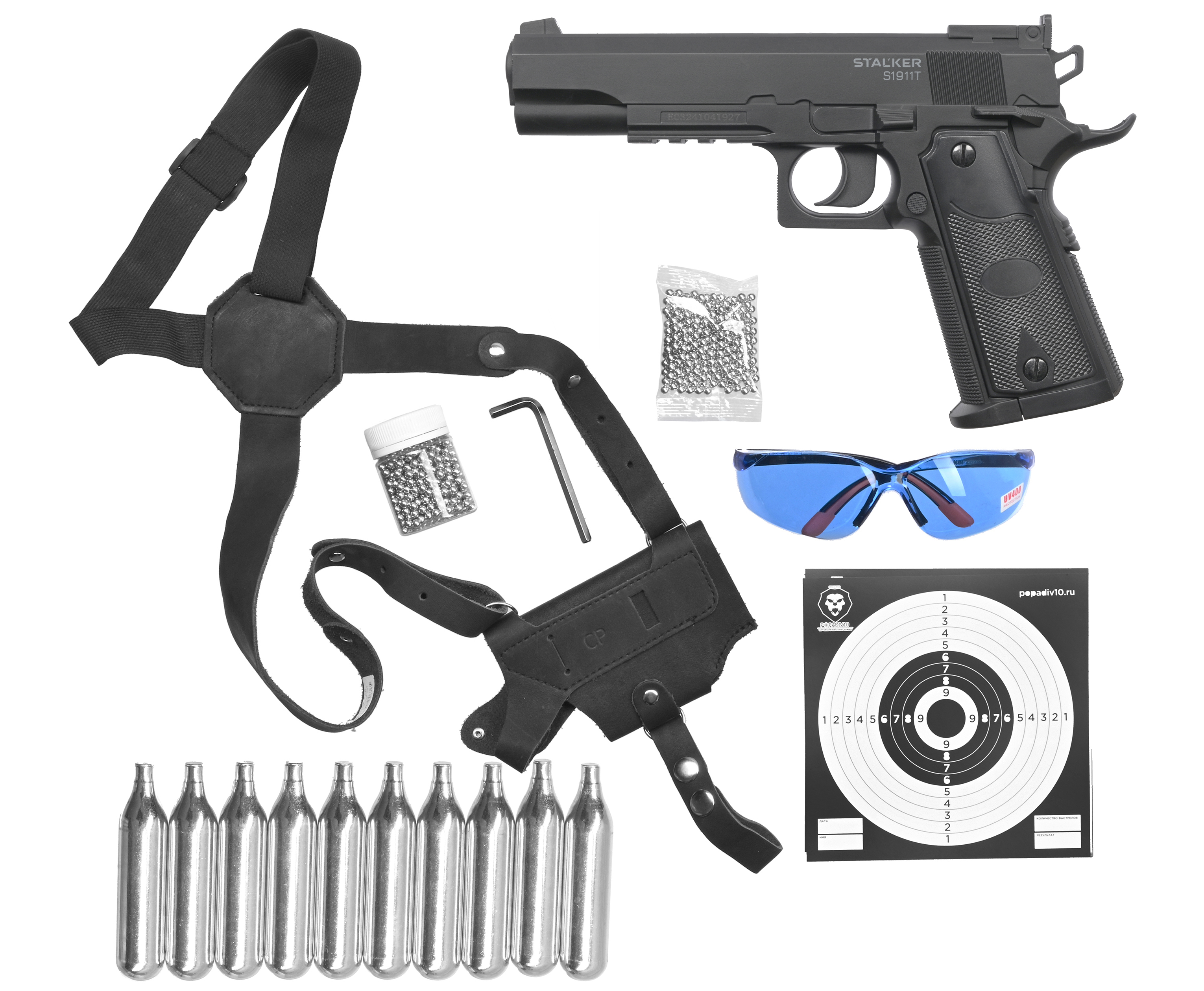 Пистолет пневматический Stalker S1911T комплект Hunter подарочный №3 (4.5 мм, Colt 1911, 10 баллонов, 500 шаров, 50 мишеней, очки, кобура) купить в интернет-магазине Popadiv10.