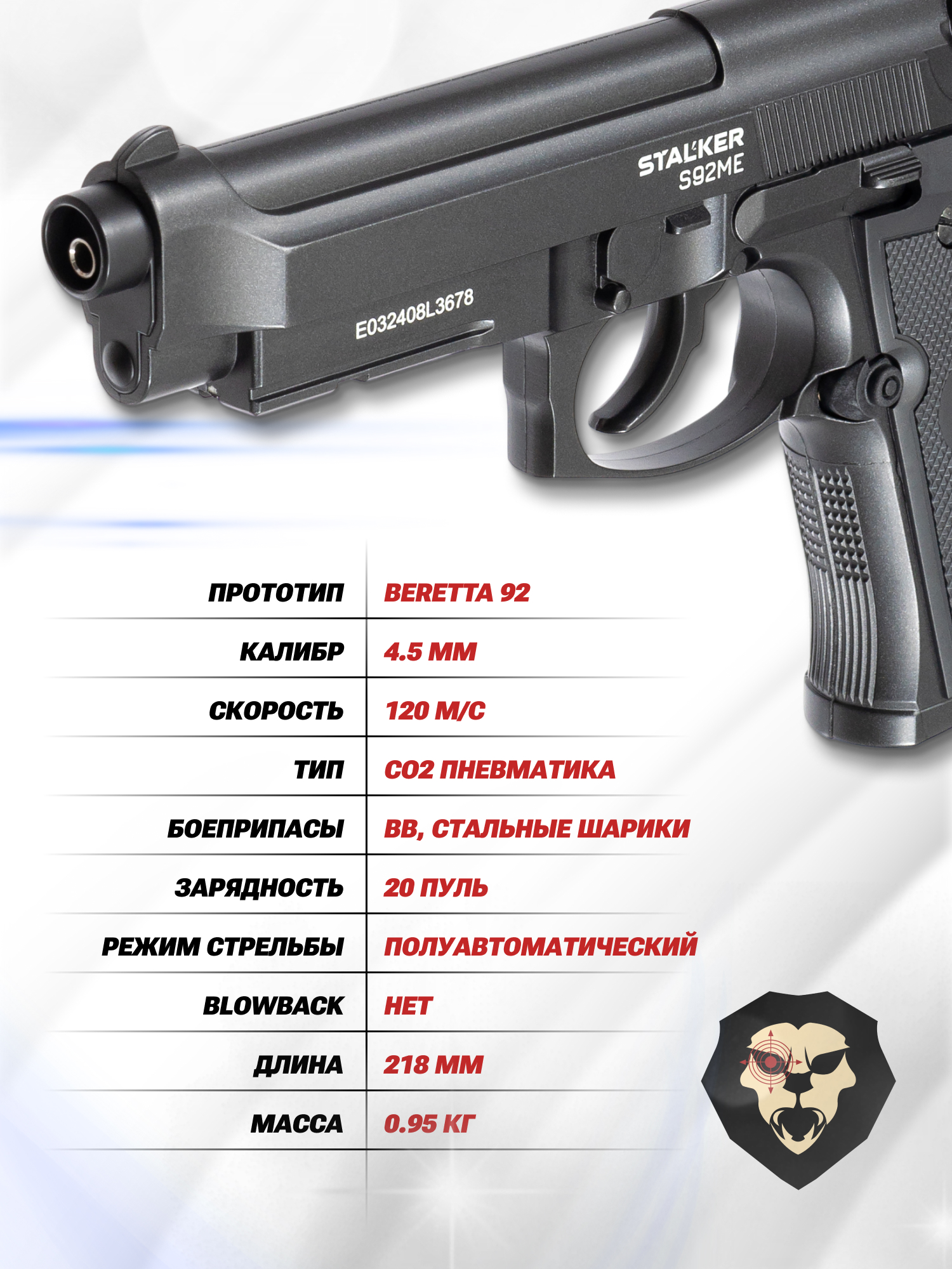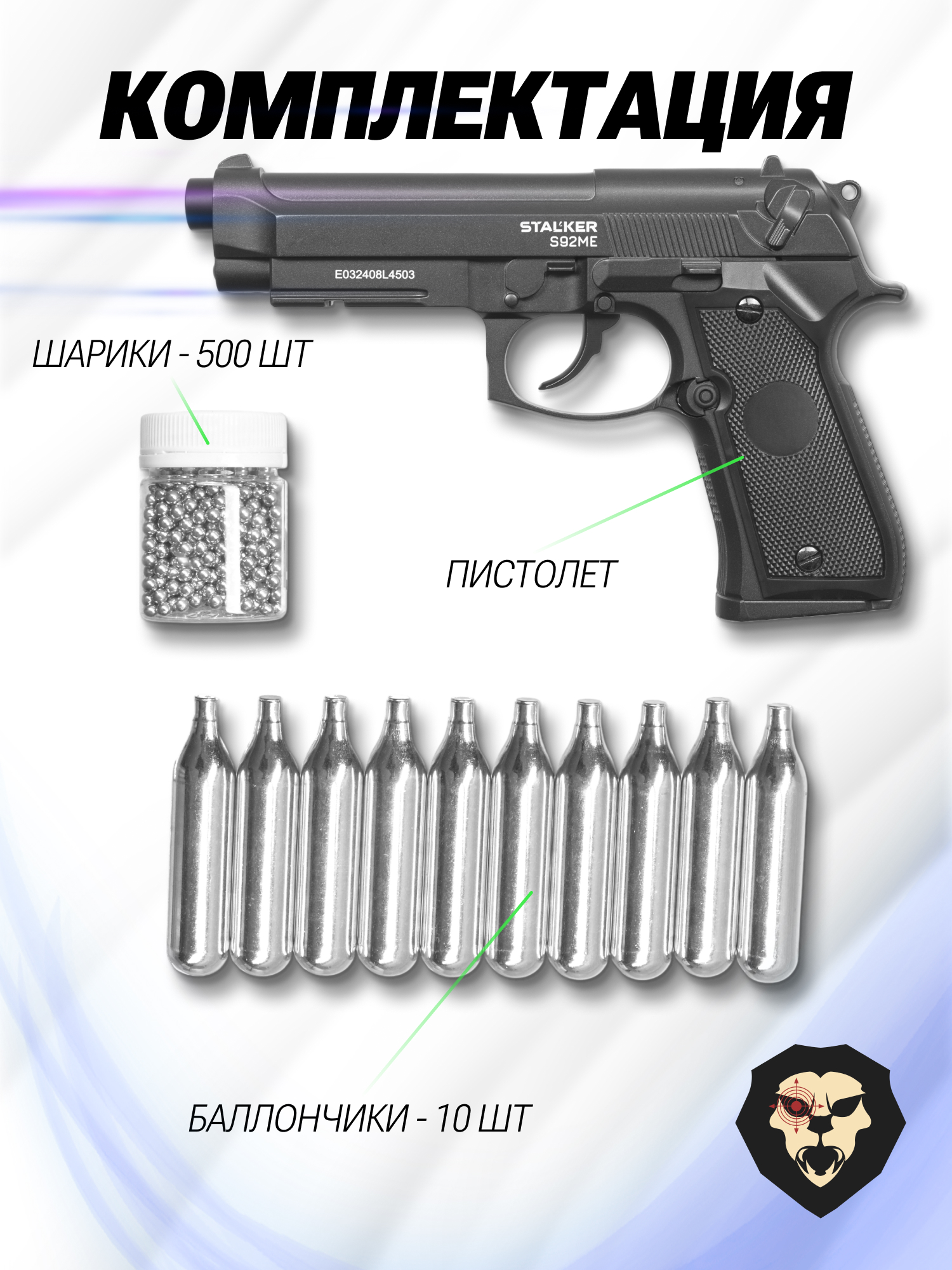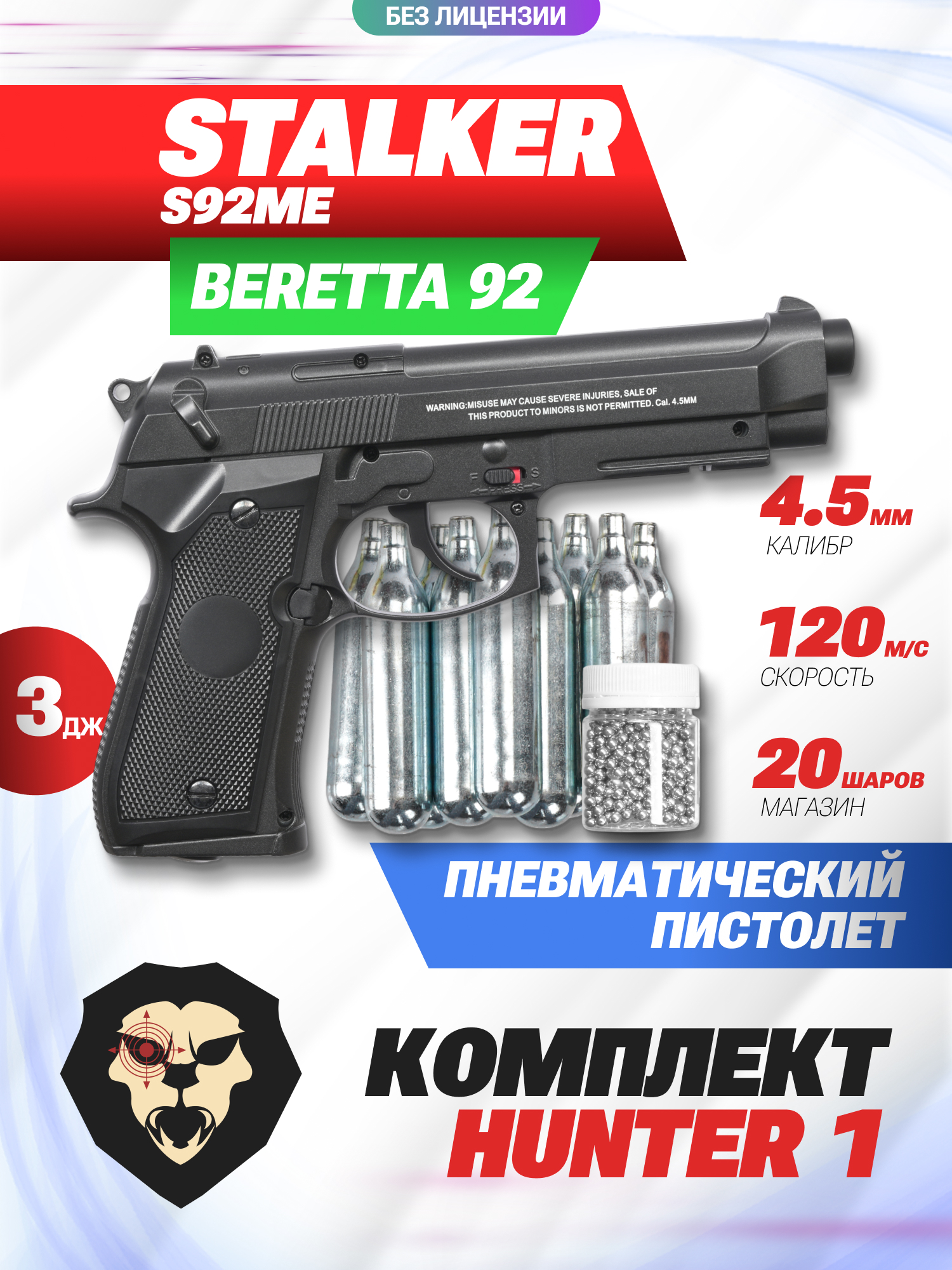 Пистолет пневматический Stalker S92ME комплект Hunter подарочный №1 (4.5 мм, Beretta 92, 10 баллонов, 500 шаров) купить в интернет-магазине Popadiv10.