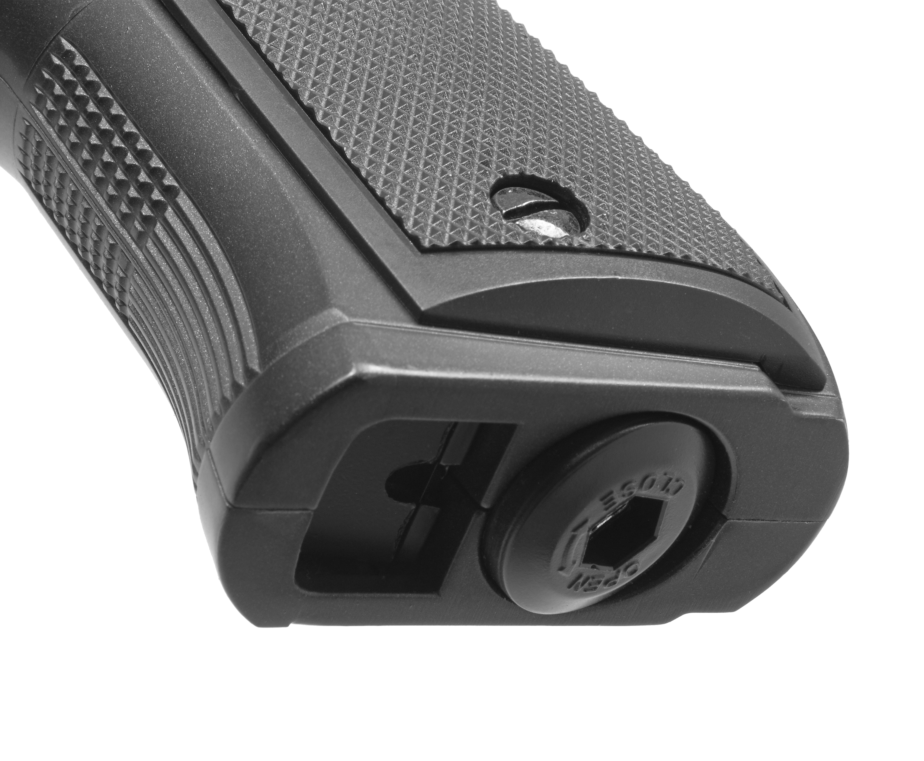 Из указанного материала сформирована рама и затвор, который в этой вариации неподвижен, что создает монолитную прочную конструкцию. Общая длина изделия составляет 215 миллиметров. При этом модель получилась довольно увесистой, что дает реалистичные ощущения при удержании.