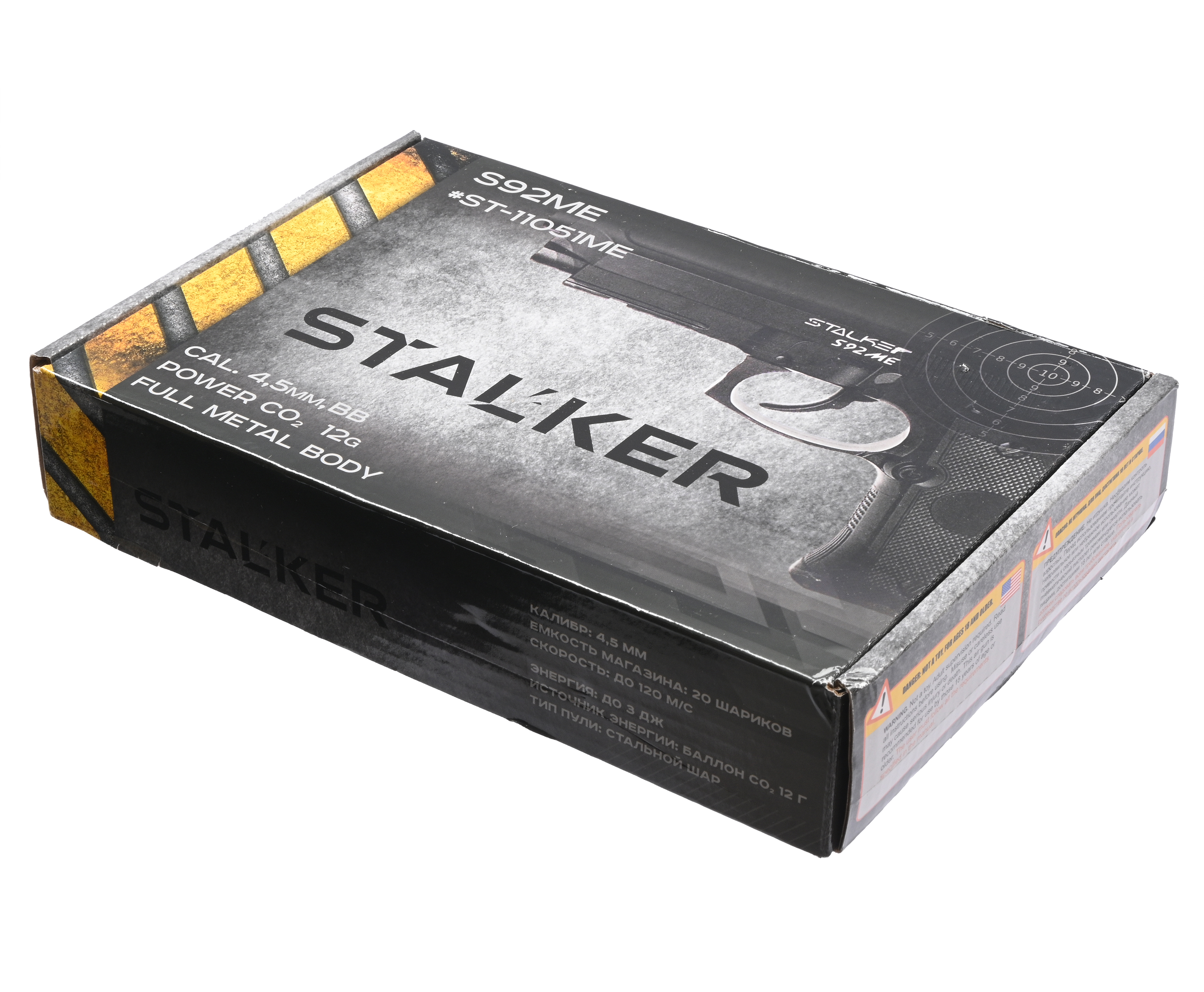 Артикул производителя ST-11051ME Пистолет пневматический Stalker S92ME 4.5 мм комплект Hunter подарочный №2 (Beretta 92, 10 баллонов, 500 шаров, 50 мишеней, очки) по низкой цене 8550 руб. Модель со штрихкодом производителя 4000844439673 Вы можете оплатить наложенным платежем с доставкой или в отделении транспортной компании (ПЭК, СДЭК, Boxberry). Ваш заказ со штрихкодом 2000000174853 забрать на почте с оплатой при получении в любой части Российской Федерации.