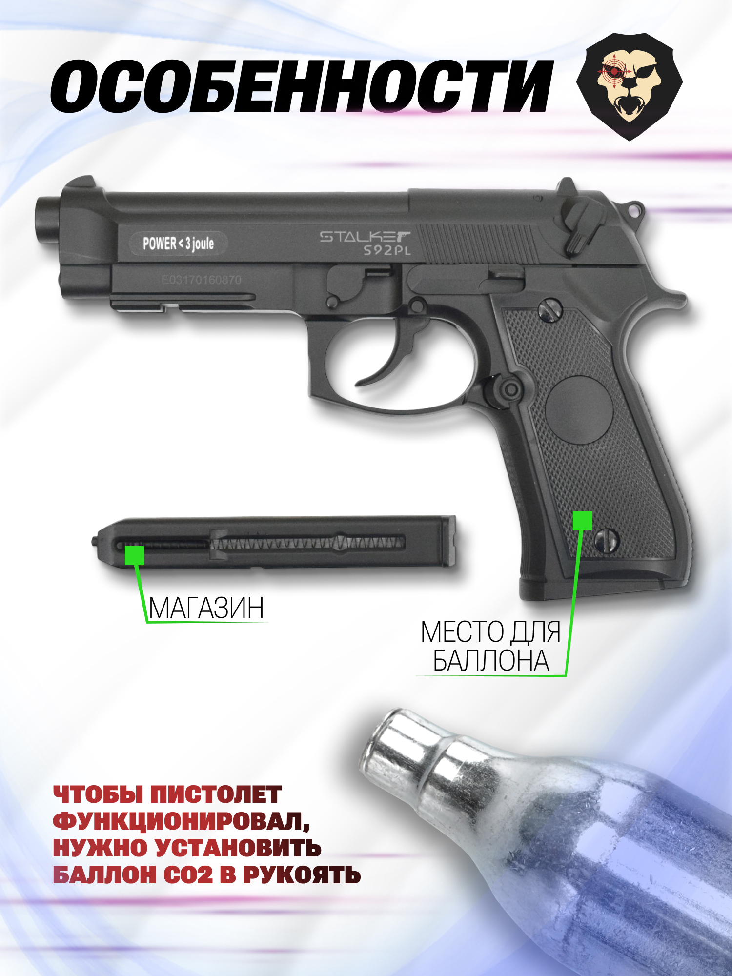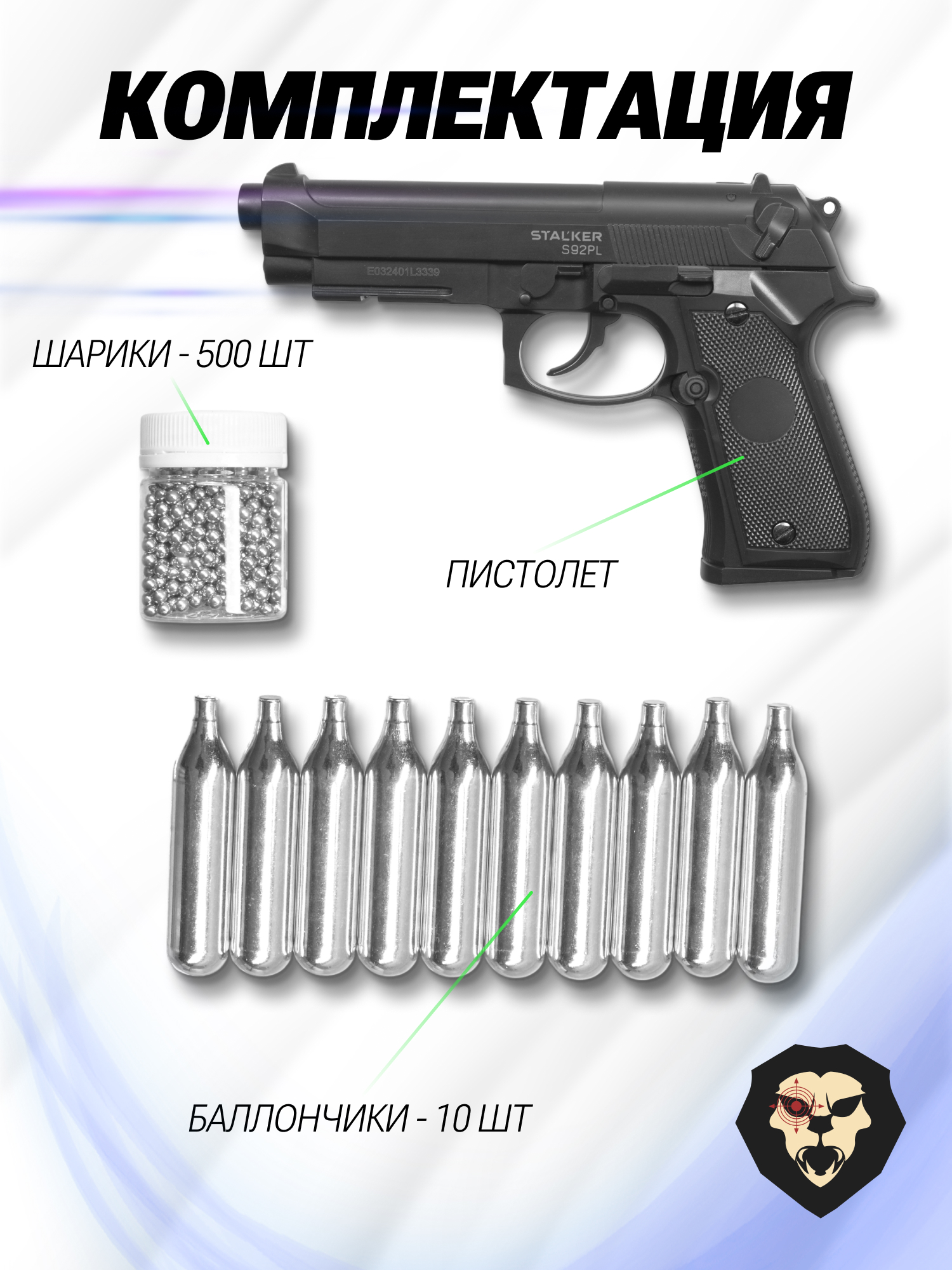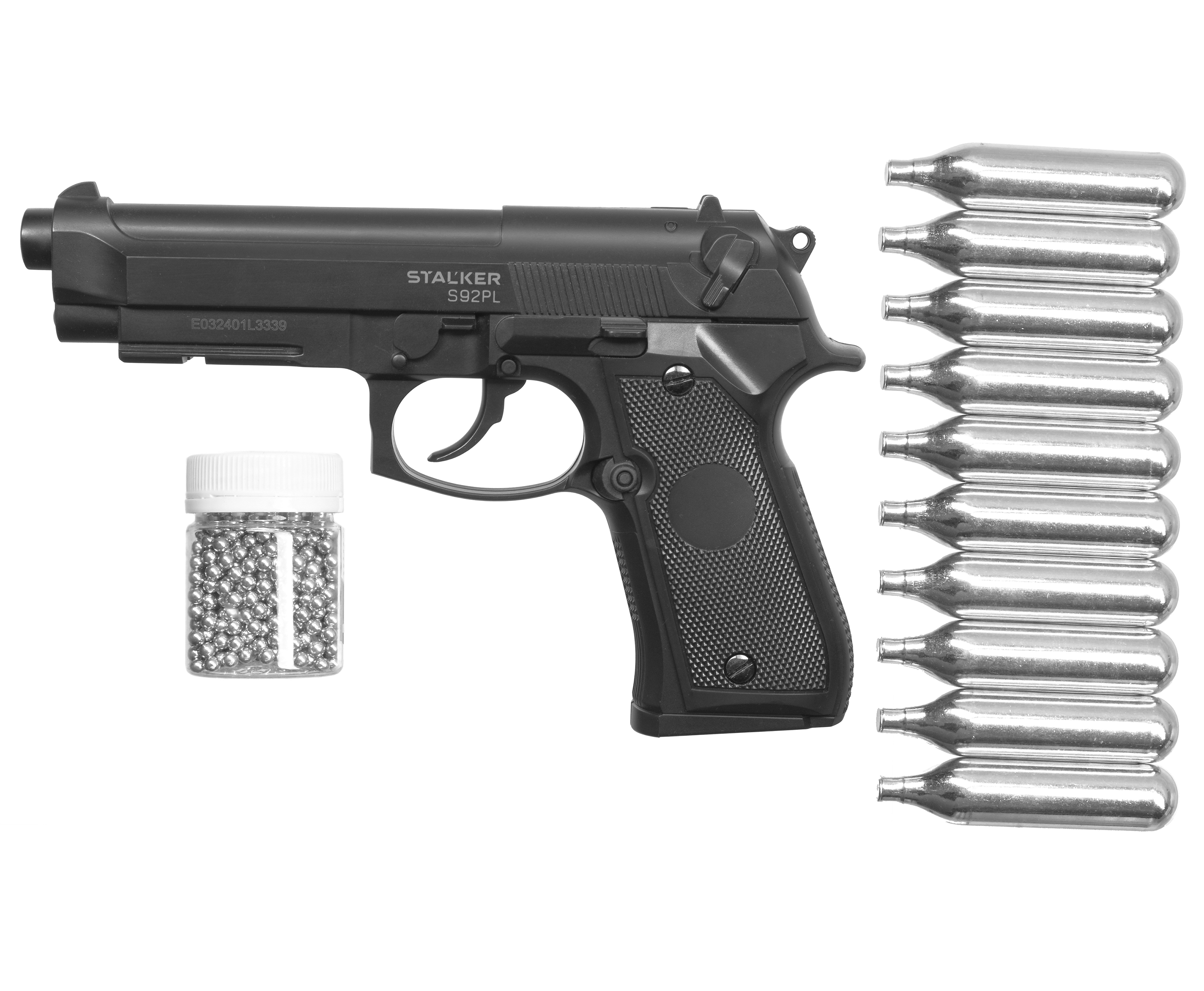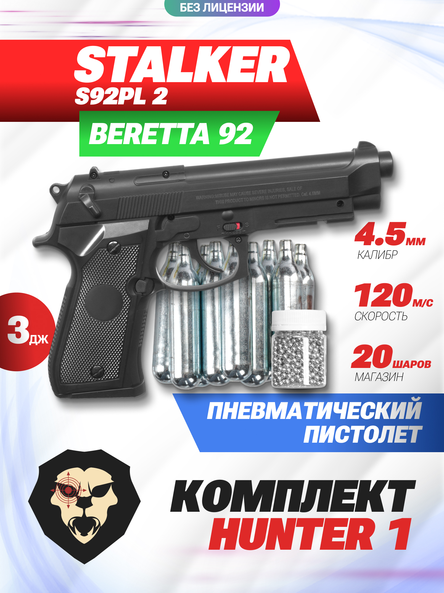 Пистолет пневматический Stalker S92PL 2 4.5 мм комплект Hunter подарочный №1 (Beretta M92, 10 баллонов, 500 шаров) купить в интернет-магазине Popadiv10.