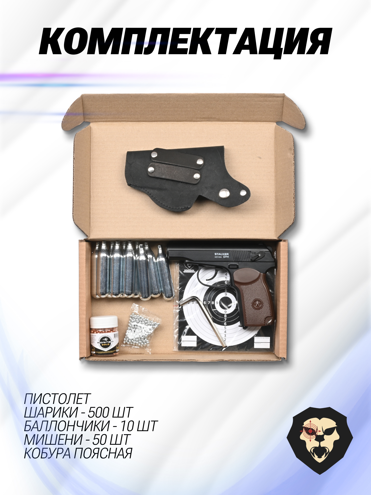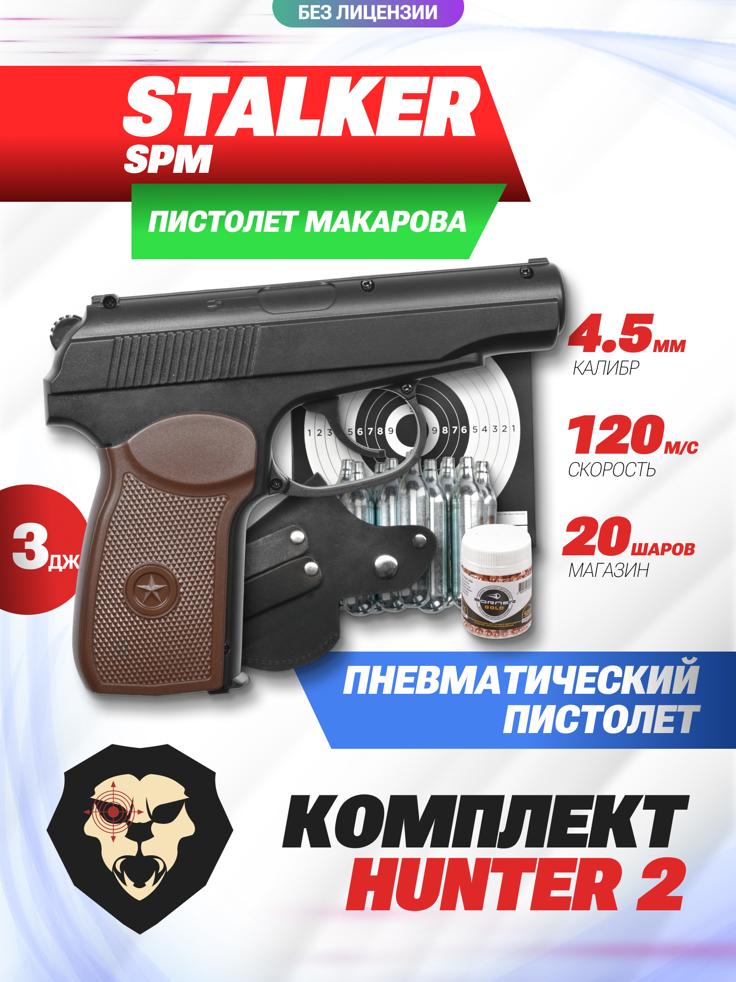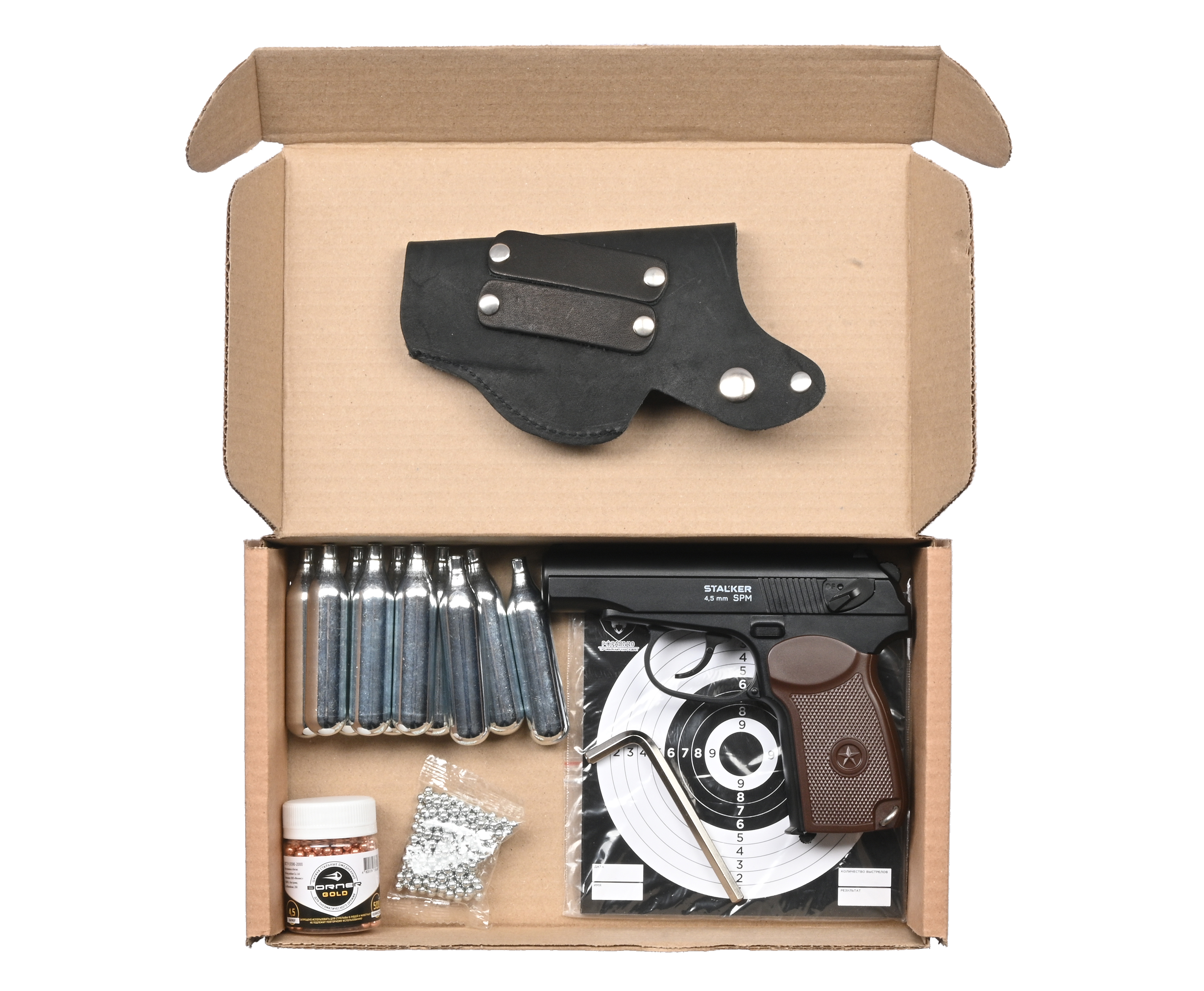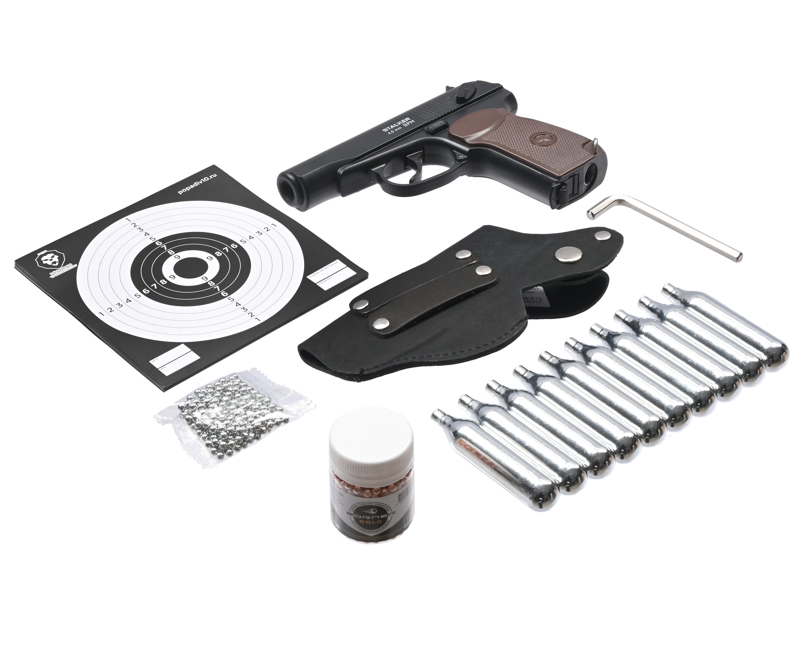Пистолет Stalker SPM комплект Hunter подарочный №2 (4.5 мм, ПМ, Макаров, 10 баллончиков, 500 шариков, 50 мишеней, кобура поясная) купить в интернет-магазине Popadiv10.
