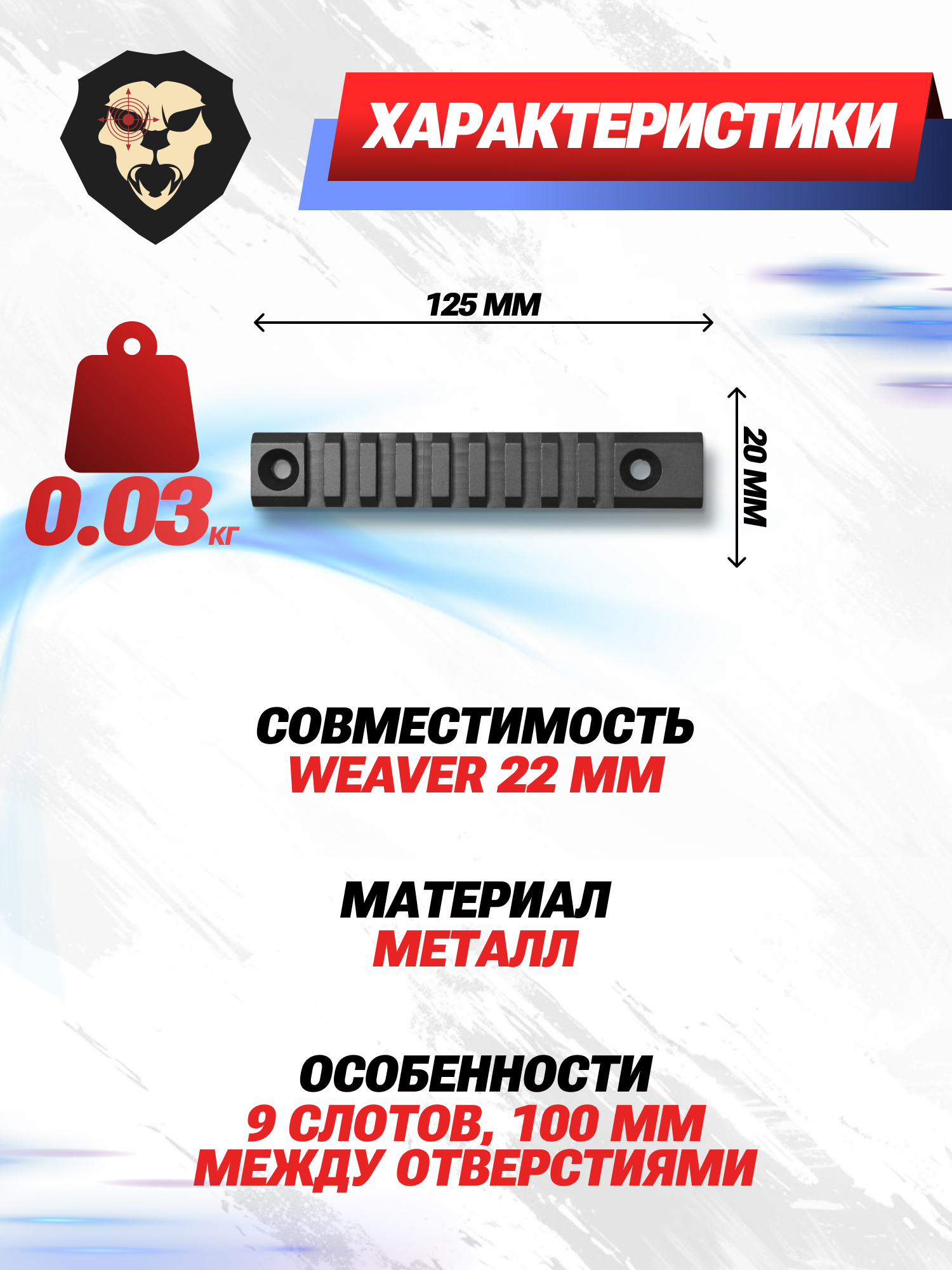 Планка Патриот Picatinny BH-R04 125 мм - это универсальная платформа для установки оптических или коллиматорных прицелов, фонарей, лазерных целеуказателей и других аксессуаров. Благодаря стандартным размерам и специальной конструкции, эта деталь дает надежную фиксацию и точное выравнивание установленных устройств.