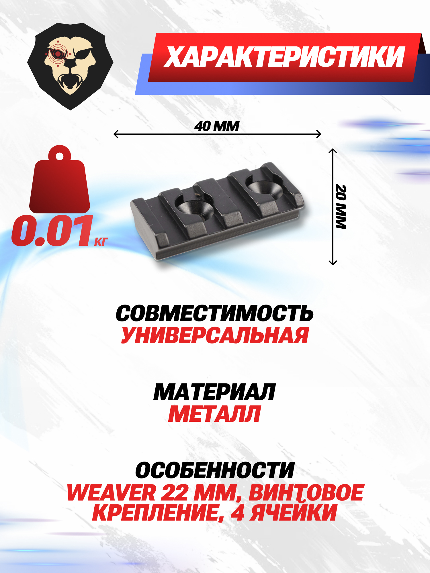 | Особенности | Weaver 22 мм, винтовое крепление, 4 ячейки |