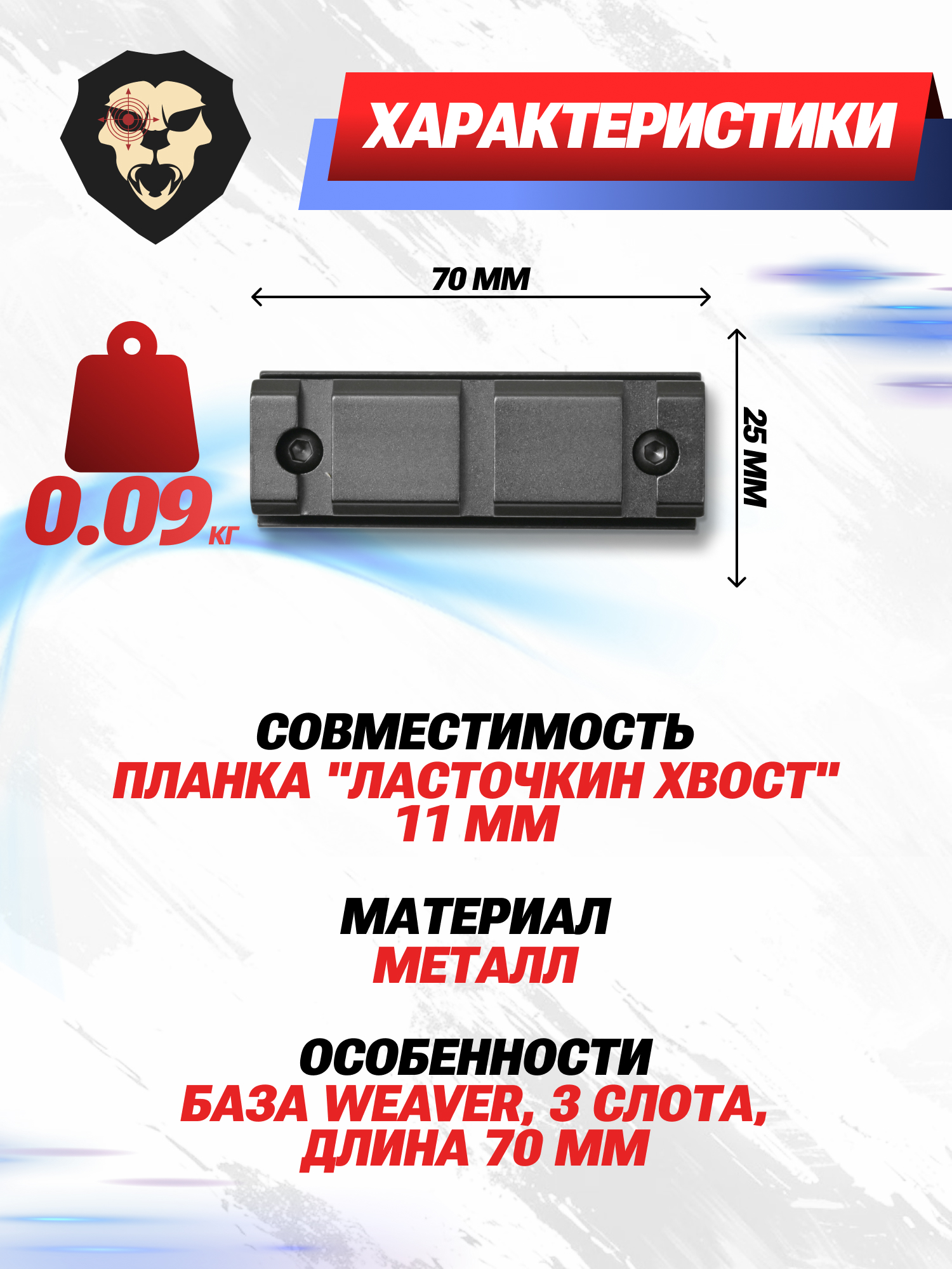 | Особенности | База Weaver, 3 слота, длина 70 мм |