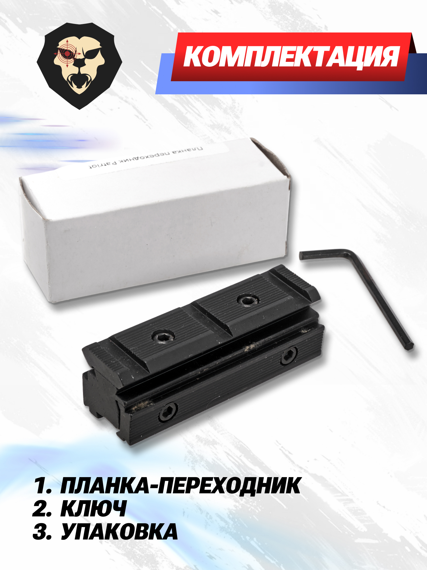 Переходник длиной 70 миллиметров удерживается на направляющей посредством 4 винтов, надежно фиксирующих модель на посадочных местах, исключая сдвиг во время выстрела. Для затягивания прижимных болтов в комплекте с устройством идет универсальный ключ с шестигранным профилем. Стоит иметь в виду, что после монтажа линия прицеливания повышается на высоту 25 мм крепления.