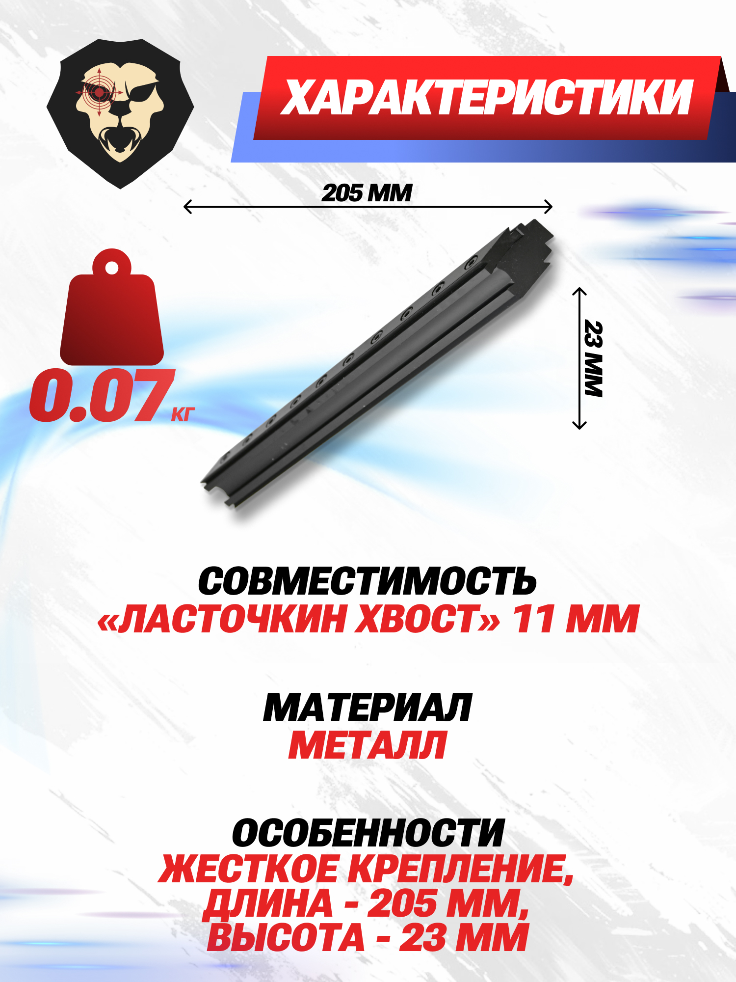 Планка-переходник Patriot BH-MR20 (205 мм, Ласточкин хвост 11 мм) купить в интернет-магазине Popadiv10.