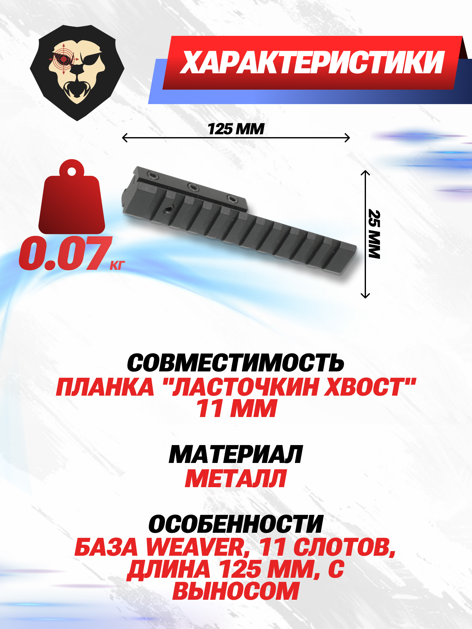 | Особенности | База Weaver, 11 слотов, длина 125 мм, с выносом |