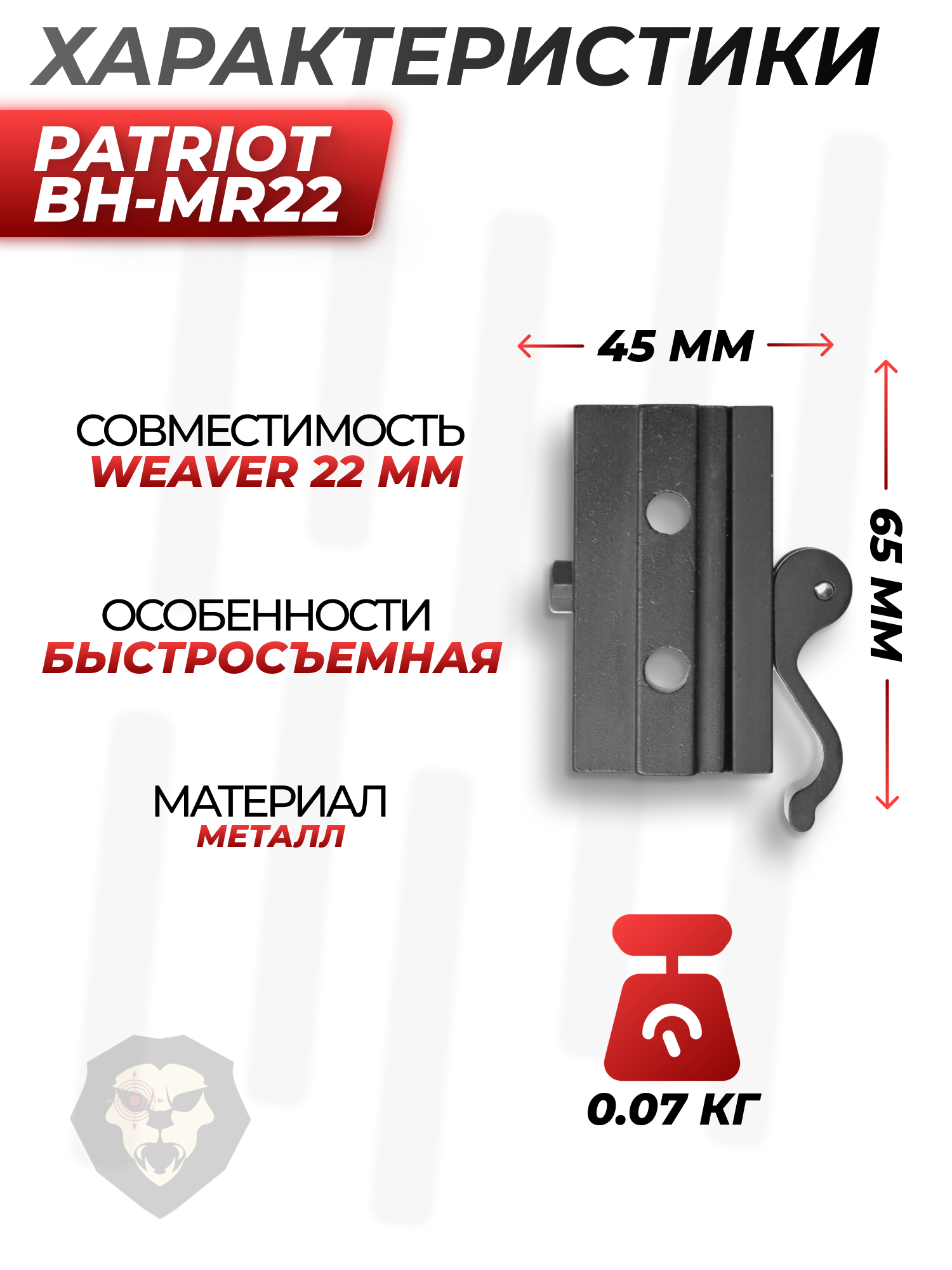 Артикул производителя BH-MR22 Планка-переходник Patriot BH-MR22 (Weaver, 40 мм) по низкой цене 780 руб. Модель со штрихкодом производителя Вы можете оплатить наложенным платежем с доставкой или в отделении транспортной компании (ПЭК, СДЭК, Boxberry). Ваш заказ со штрихкодом 2000000050416 забрать на почте с оплатой при получении в любой части Российской Федерации.