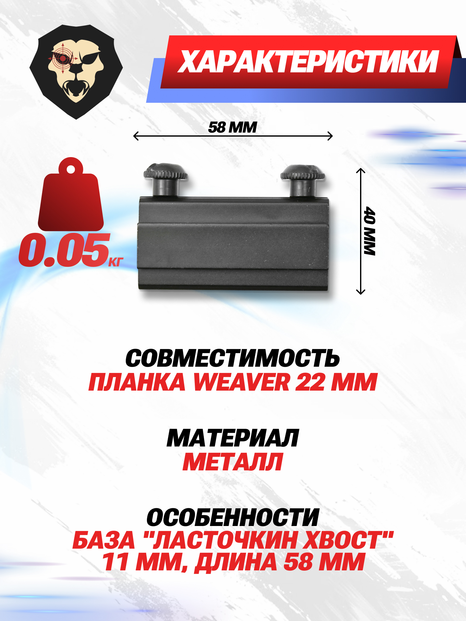 | Особенности | База "Ласточкин хвост" 11 мм, длина 58 мм |