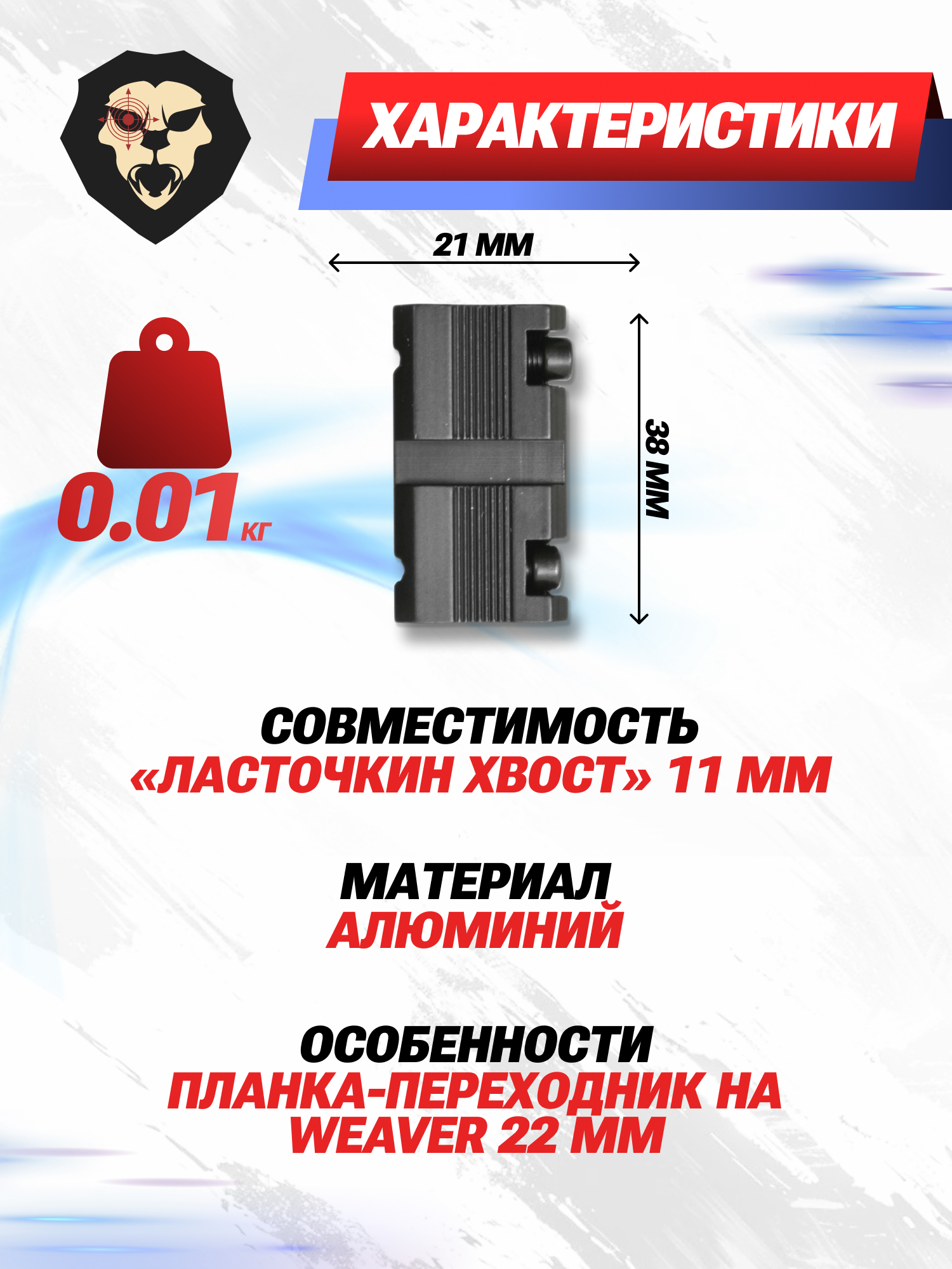 | Особенности | Планка-переходник на Weaver 22 мм |