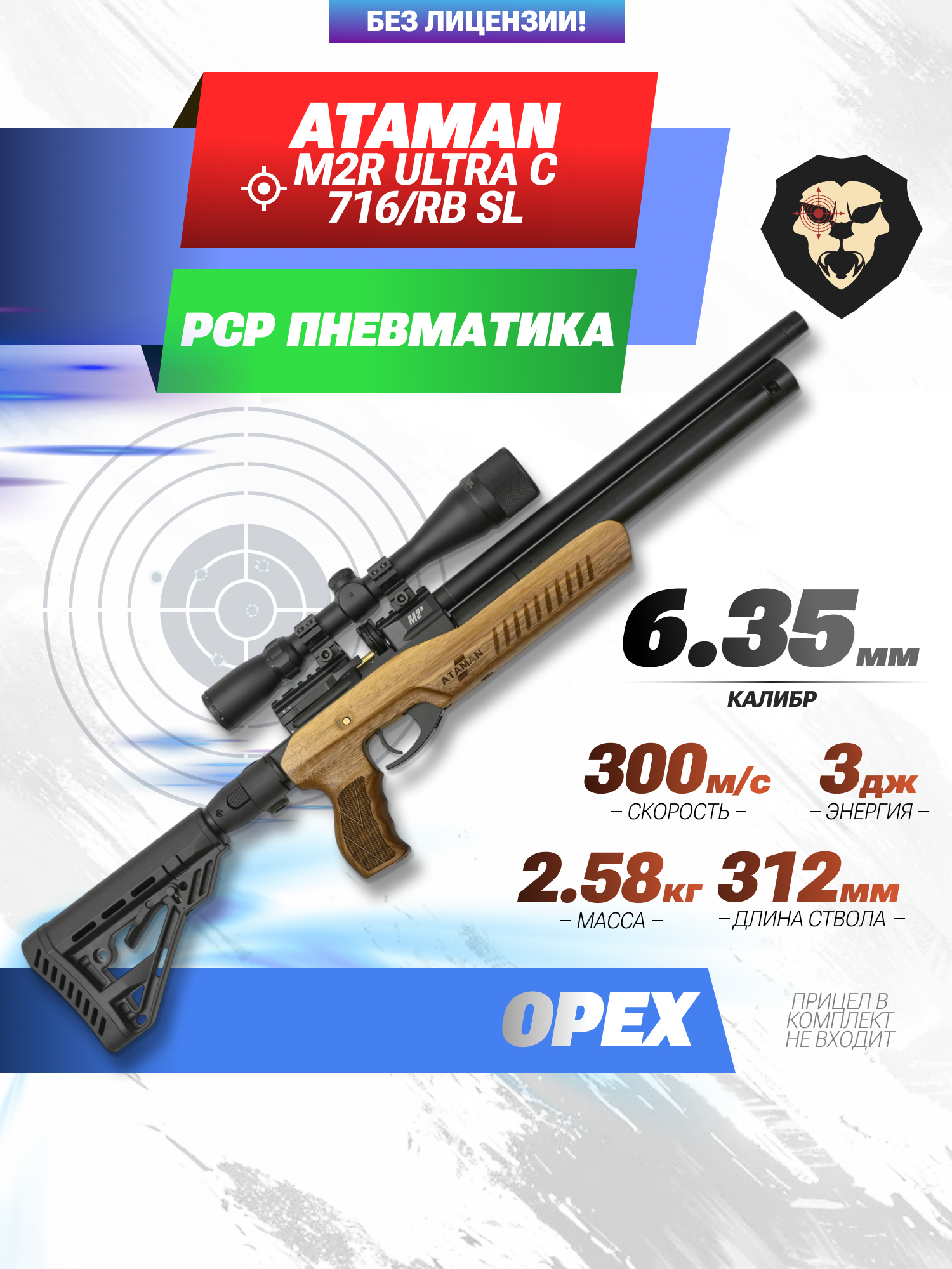 Пневматическая винтовка Ataman M2R Ultra C 716/RB SL 6.35 мм (PCP, складная, орех) купить в интернет-магазине Popadiv10.