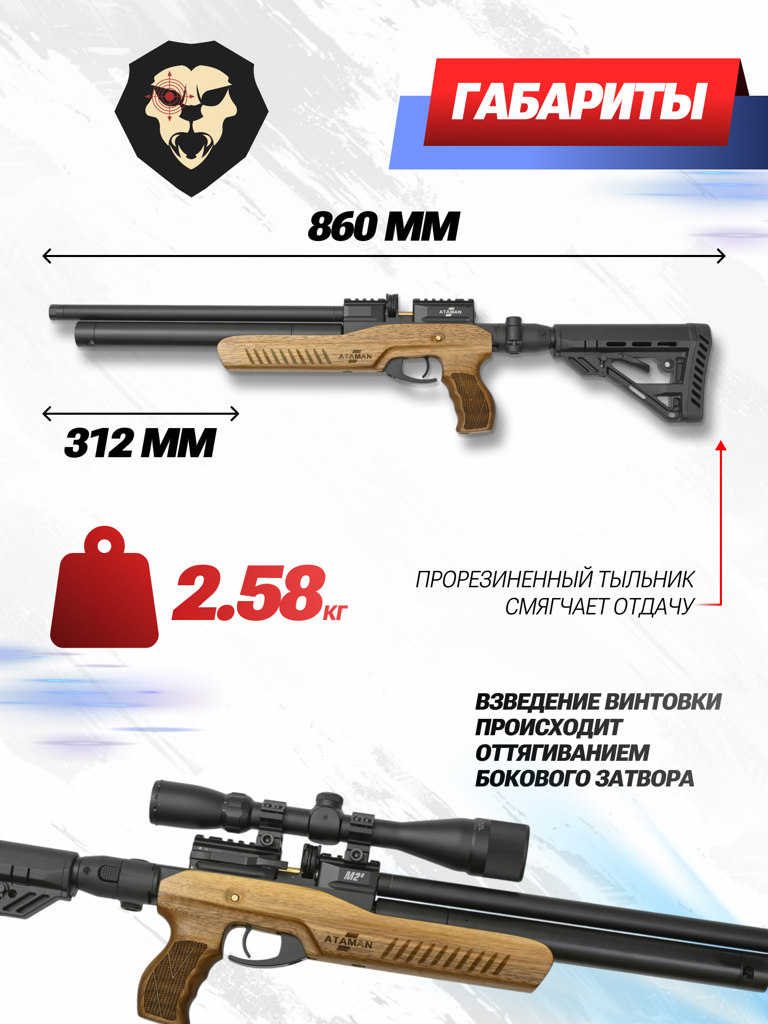На российском рынке пневматики представлены винтовки и пистолеты как зарубежных, так и отечественных компаний. Среди последних стоит выделить фирму Атаман, которая уже более 20 лет выпускает высококачественные и надежные PCP устройства. Богатый модельный ряд пневматики бренда пополнился компактным карабином линейки M2R, оснащенным деревянной ложей и тактическим прикладом.