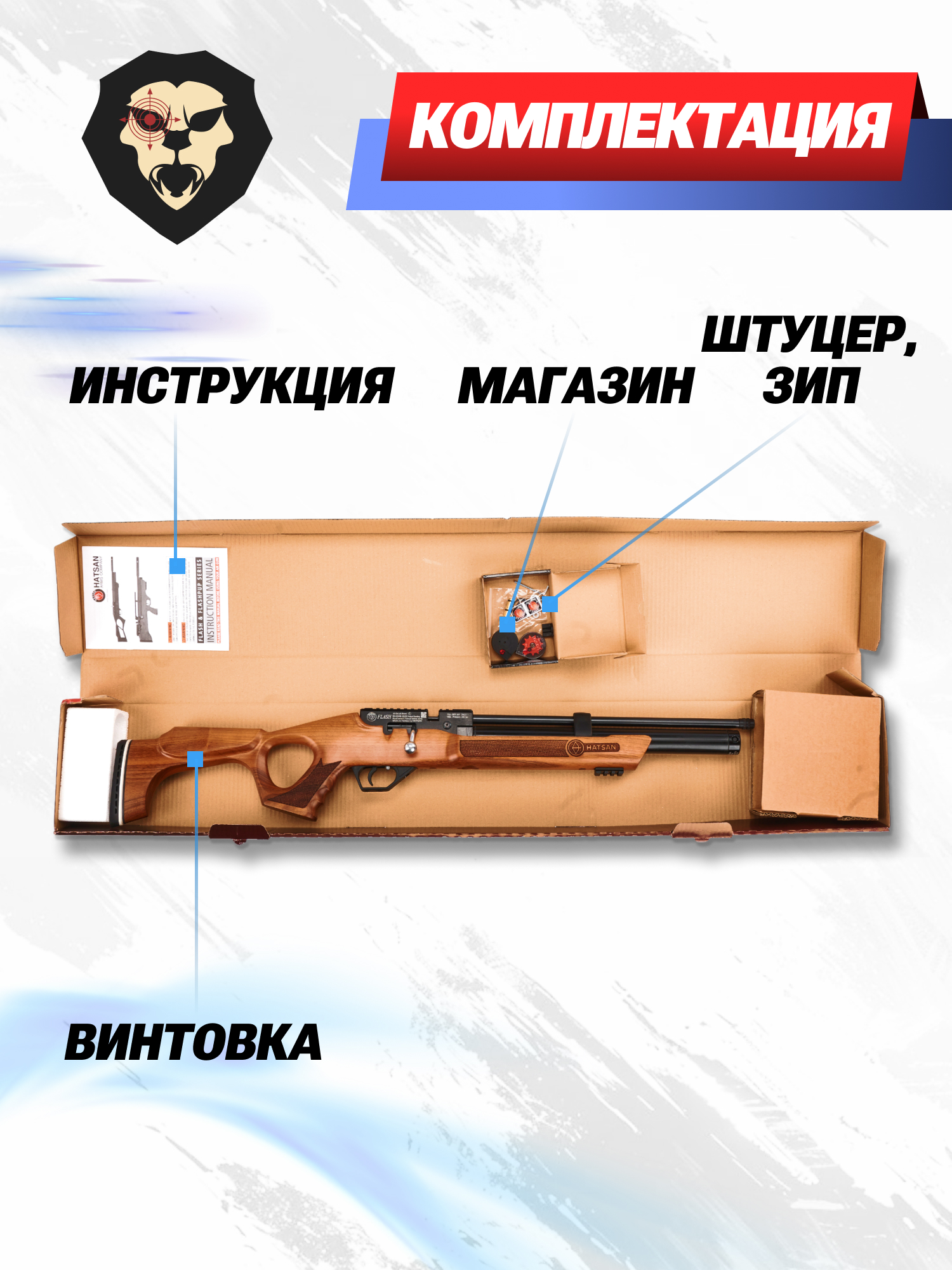 Комплектация | Винтовка, упаковка, заправочный штуцер, краткая документация, копия сертификата (по запросу покупателя), магазин |