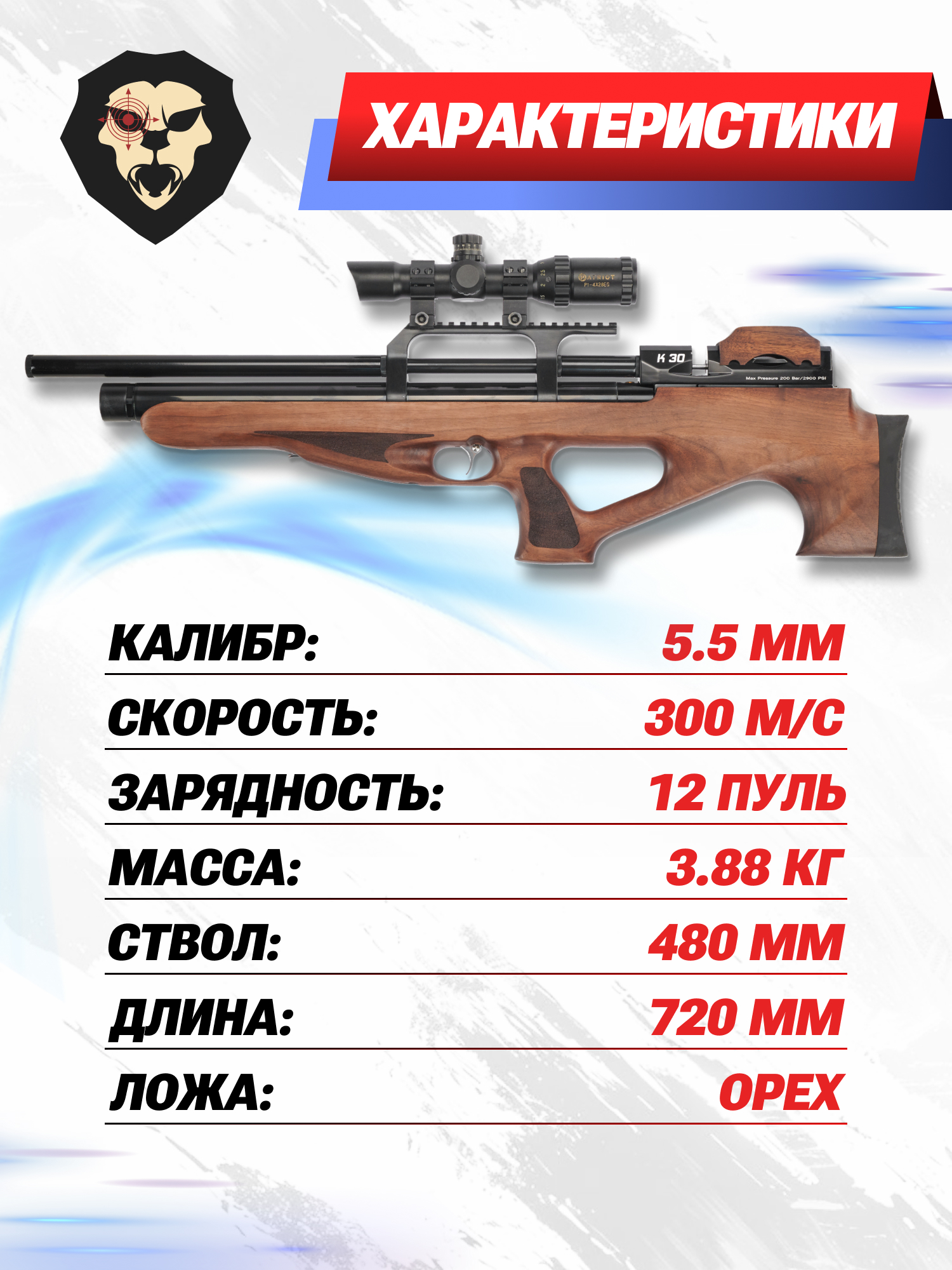 Пневматическая винтовка Kuzey K30 5.5 мм (орех, BullPup) купить в интернет-магазине Popadiv10.