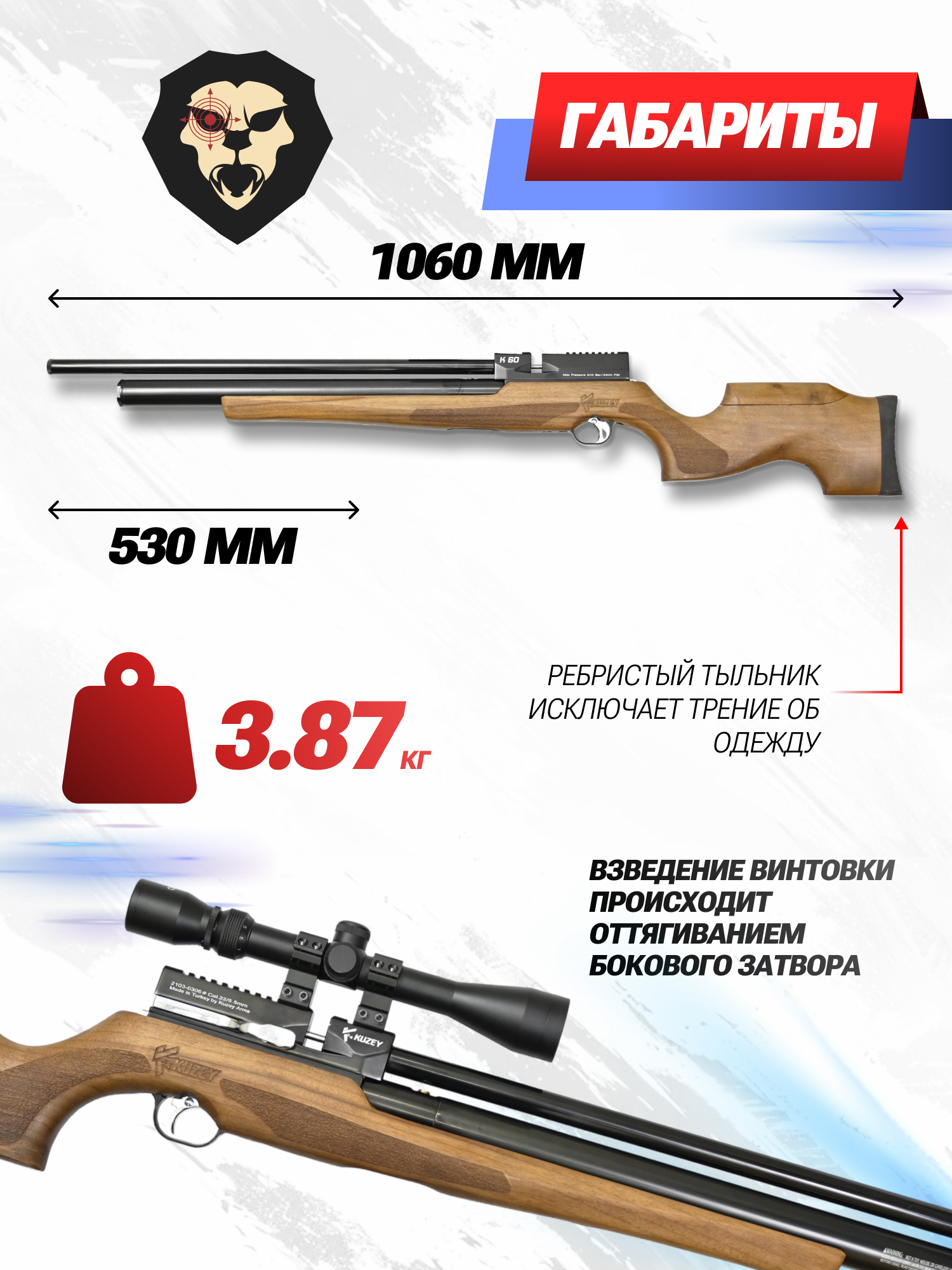 Информация о товаре "Пневматическая винтовка Kuzey K60 5.5 мм (орех)" носит ознакомительный характер, и не является публичной офертой, определяемой положениями Статьи 437 Гражданского кодекса Российской Федерации, характеристики, внешний вид, цвет и комплектация могут быть изменены производителем без уведомления.