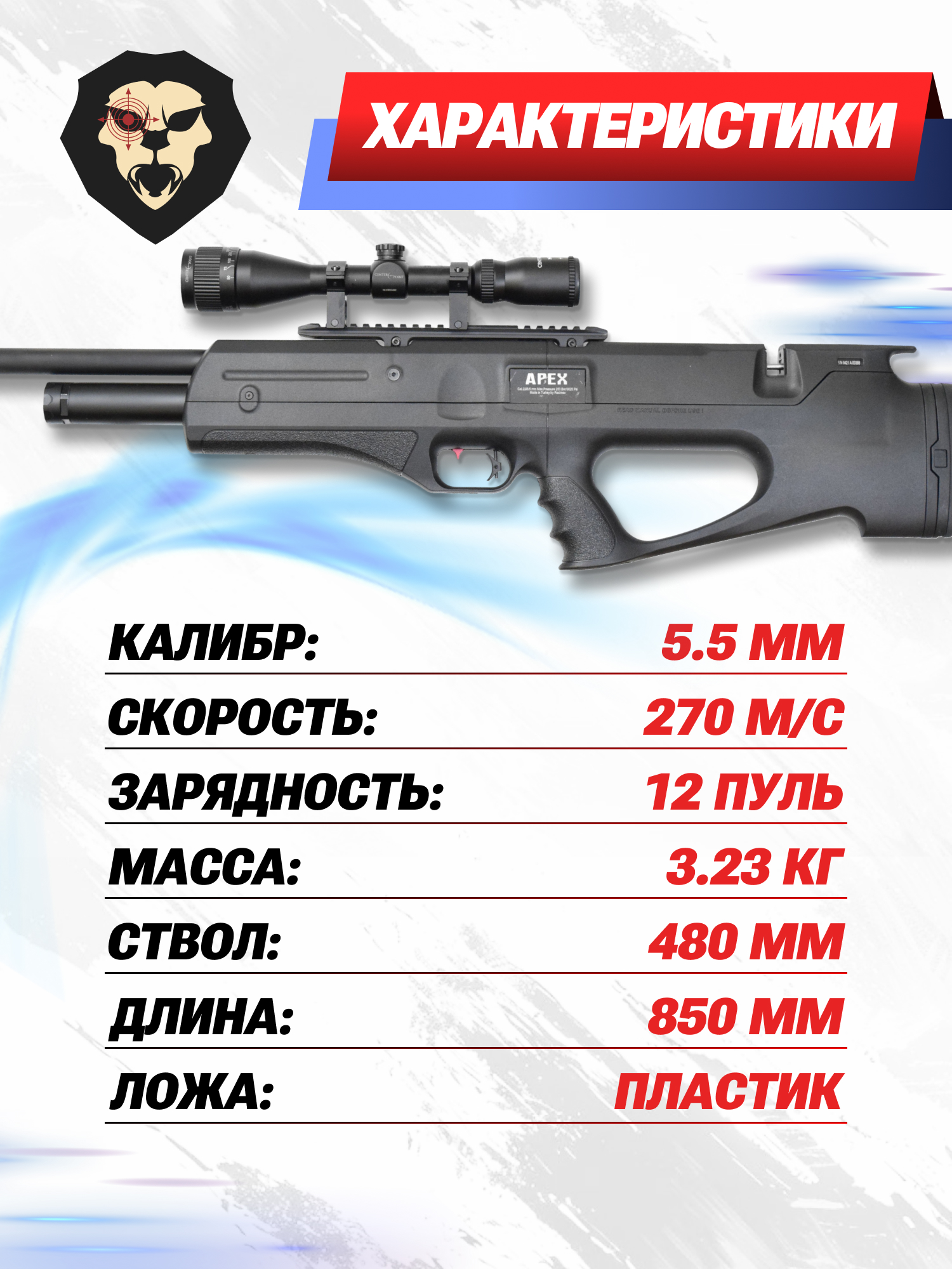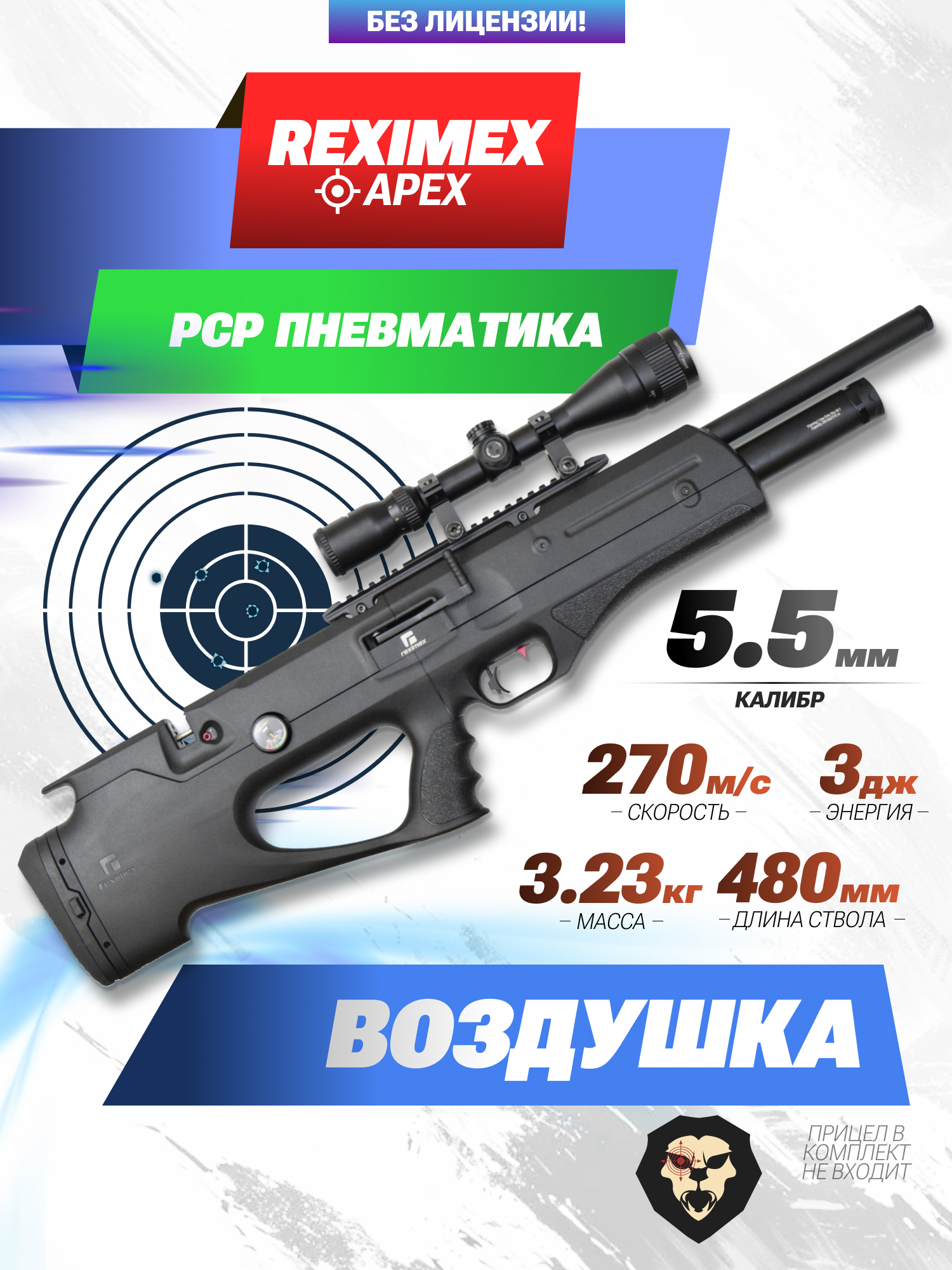 Пневматическая винтовка Reximex Apex 5.5 мм (Black, 3 Дж, PCP) купить в интернет-магазине Popadiv10.